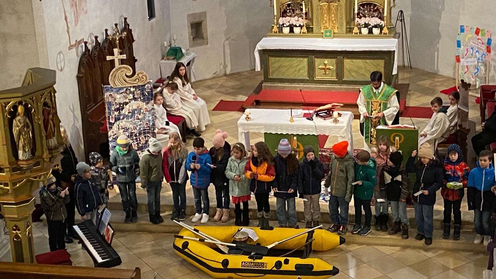 Thema der heurigen Erstkommunion: „Auf einer Welle mit Jesus“ soll besonders darauf hinweisen, dass wir immer darauf vertrauen können: Gott lässt uns selbst in den schlimmsten Stürmen des Lebens niemals allein - der Glaube trägt uns.