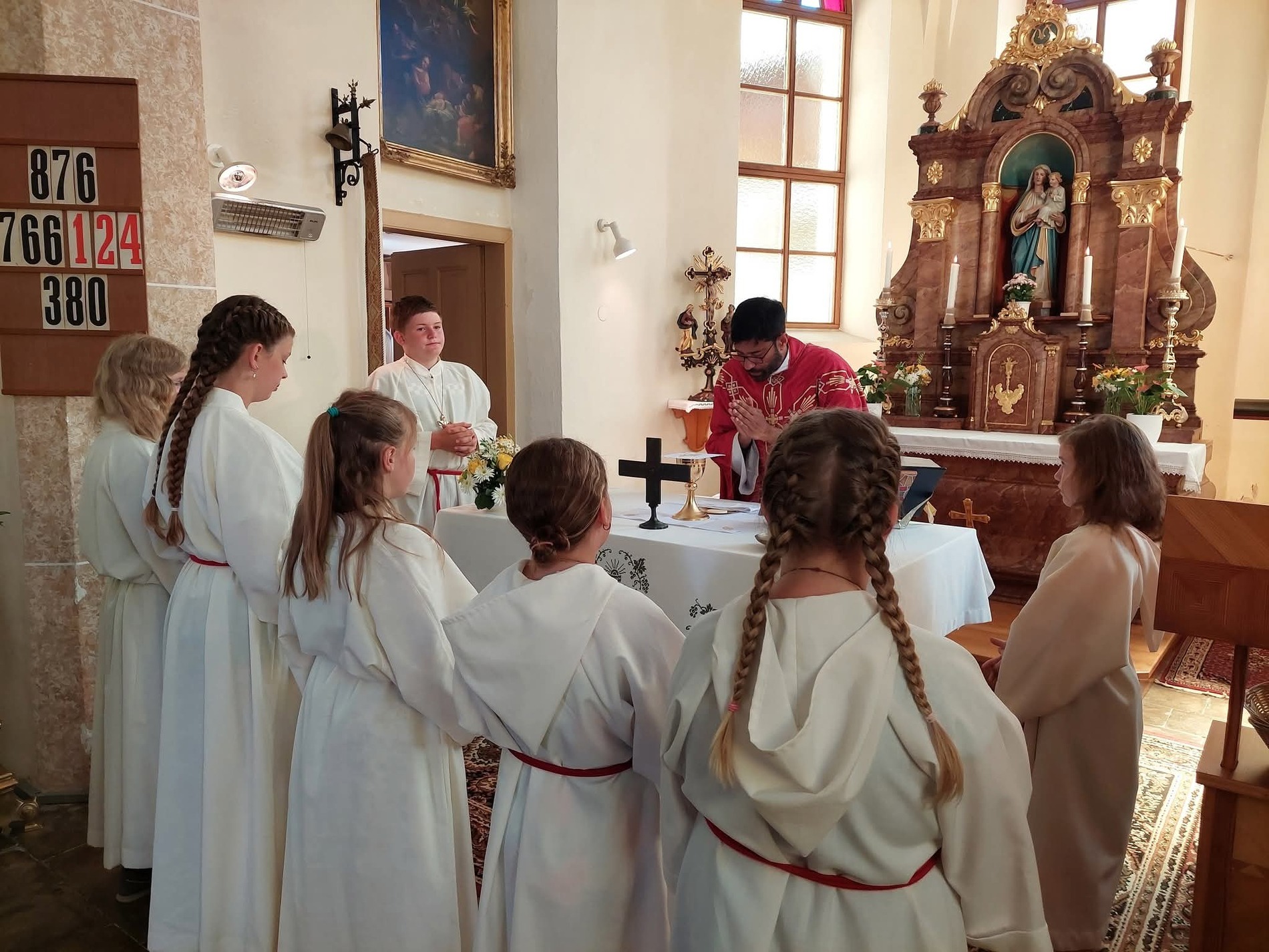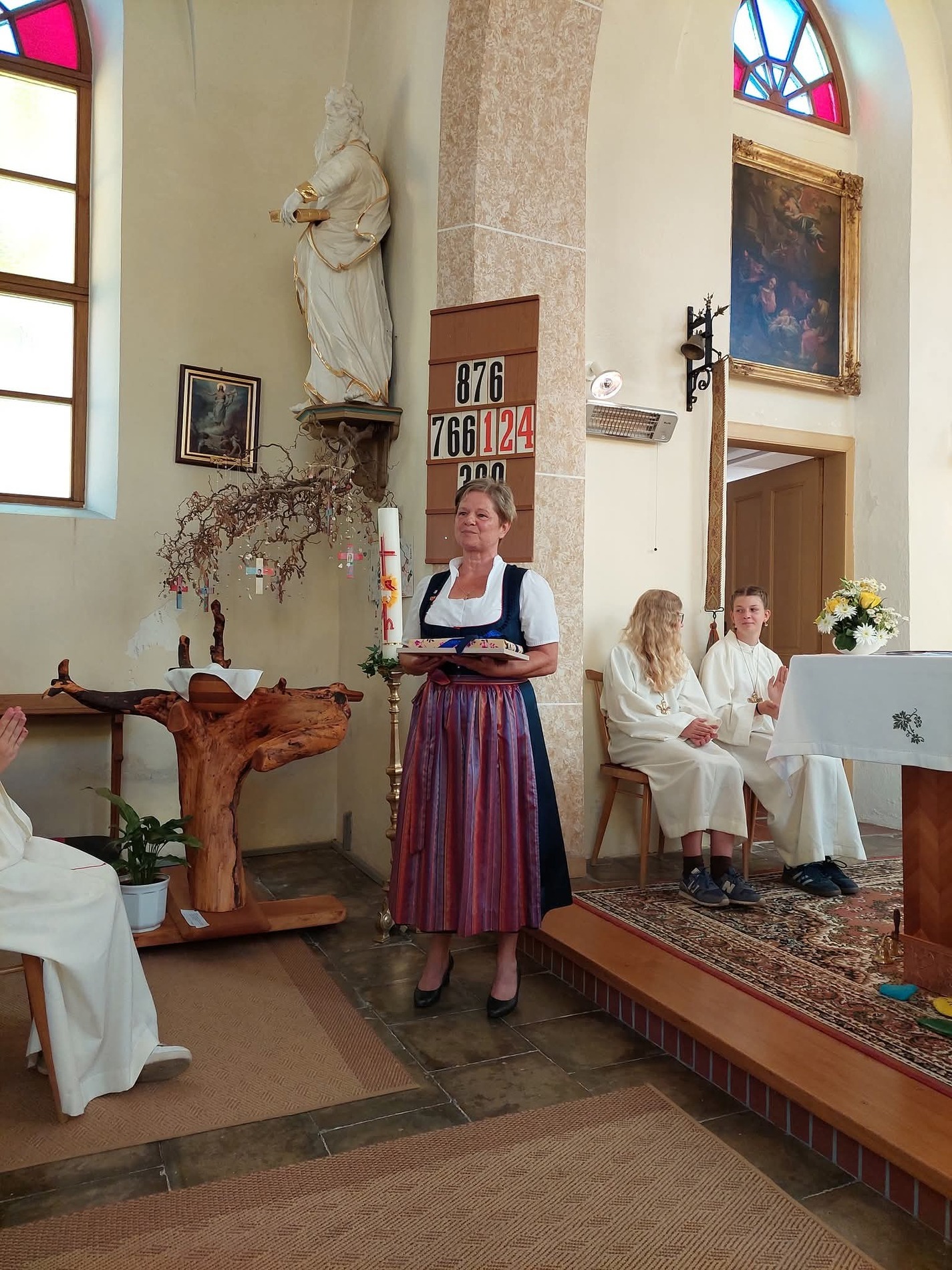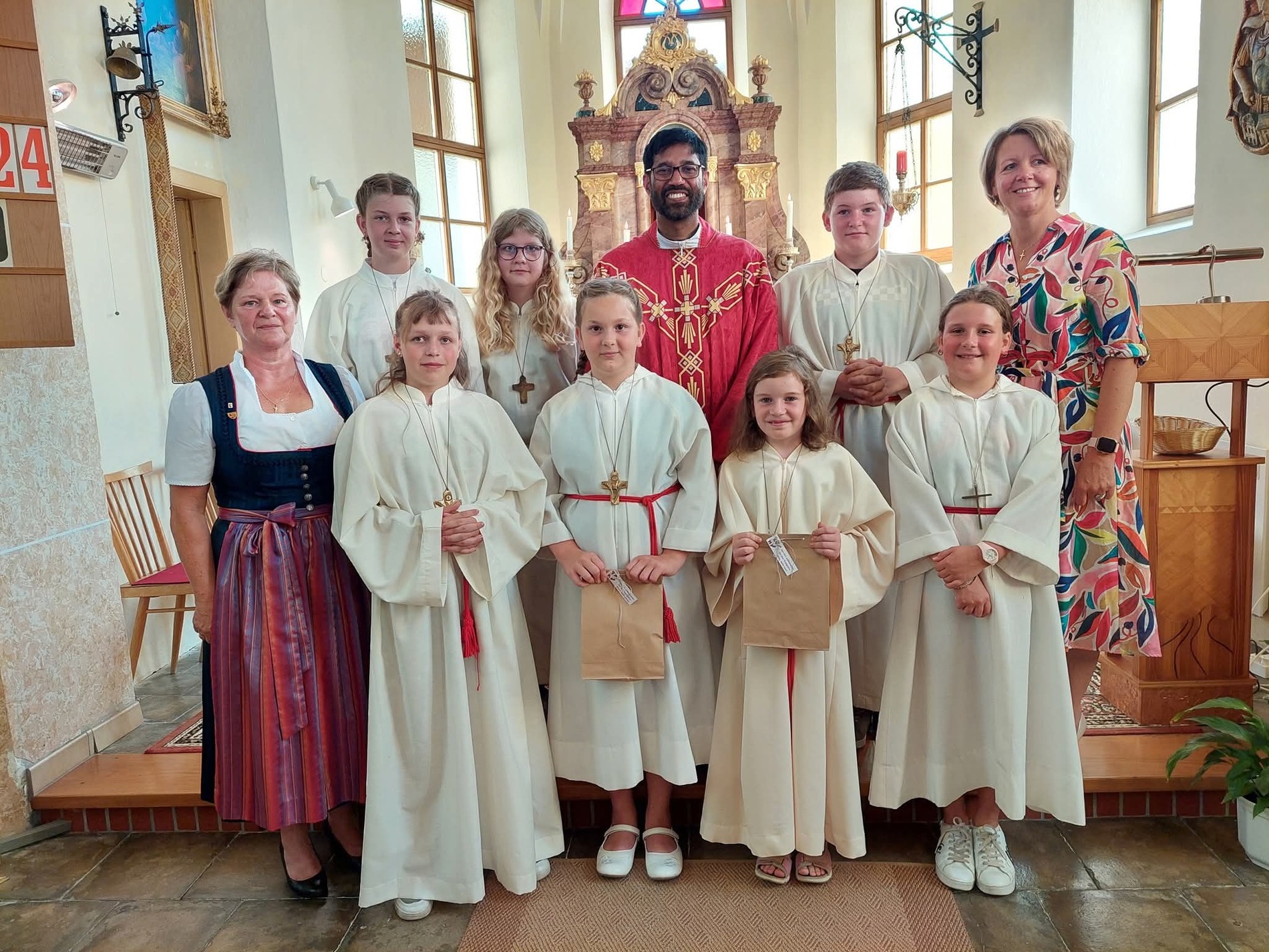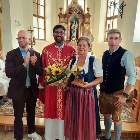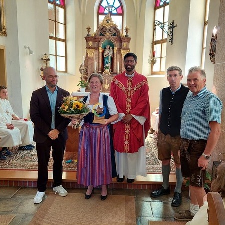 Kaplan Dr. P. Martin Alukaputhussery feierte mit der Gottesdienstgemeinde in einem bis auf den letzten Platz ausgefülltem Kirchenraum die Heilige Messe, welche eine Sängerinnenrunde aus Tradigist mit eindrucksvollem Gesang begleitete.
