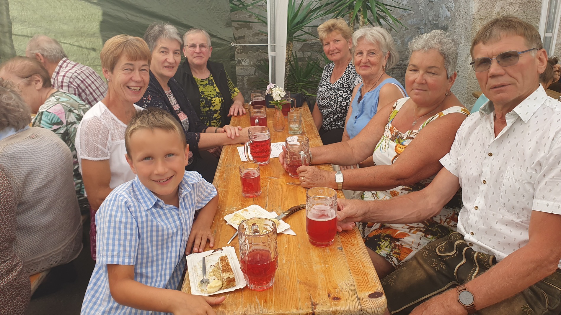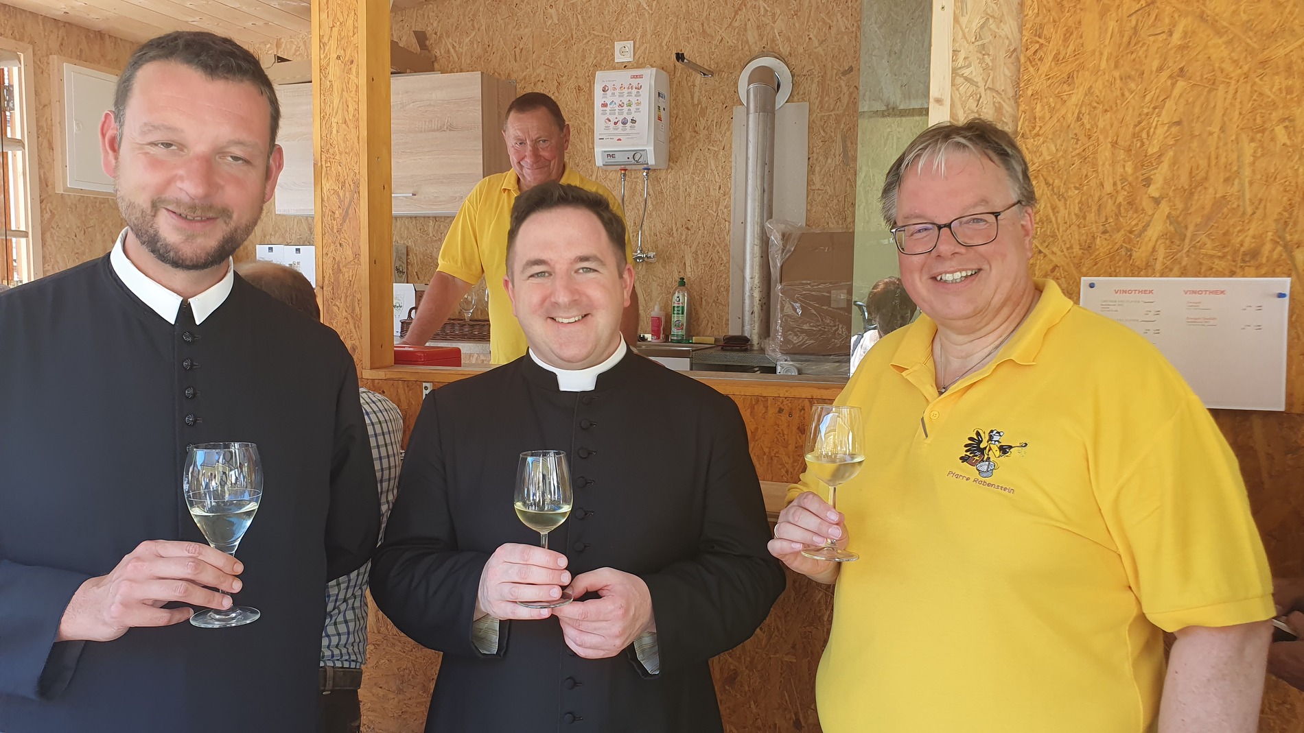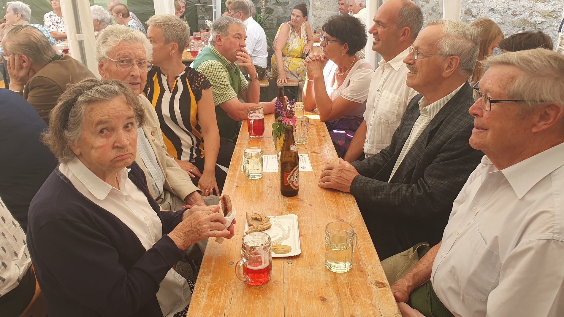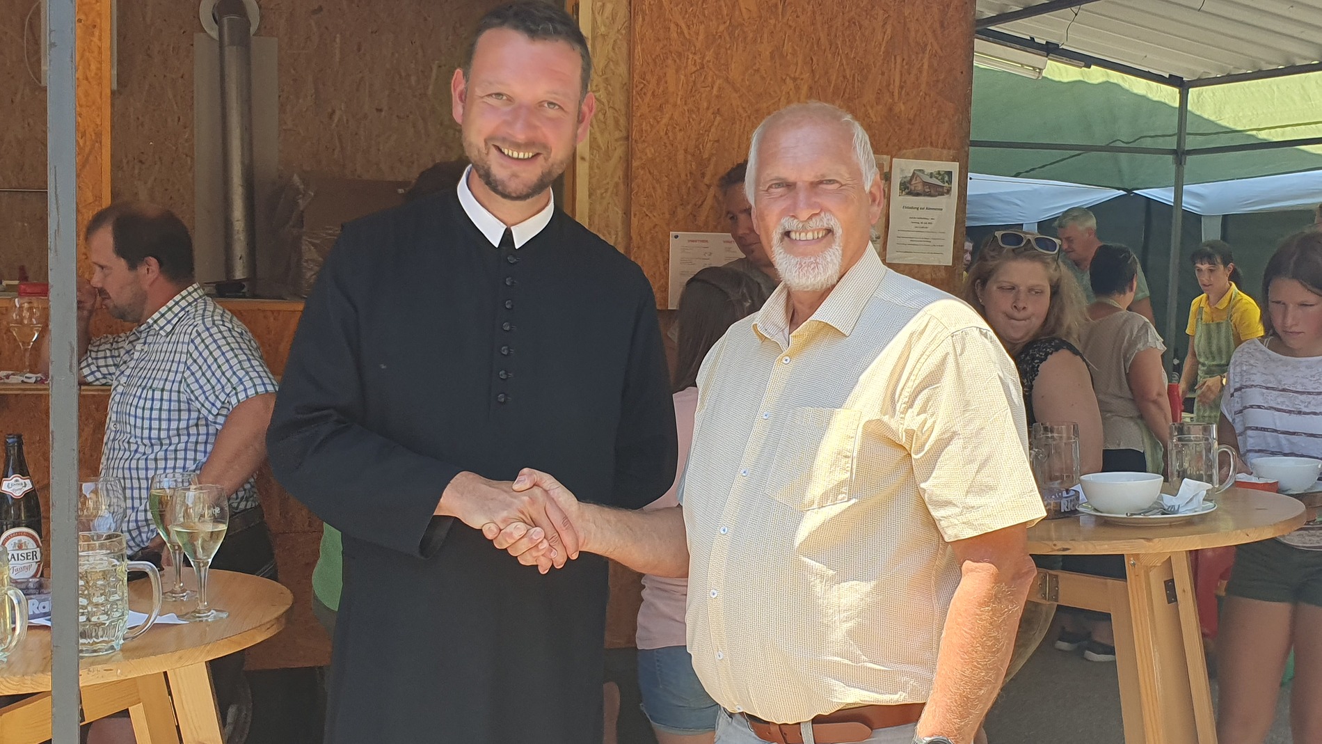 Viele Rabensteinerinnen und Rabensteiner und auch Auswärtige bevölkerten das Pfarrzentrum und den Kirchenplatz. Auch Pater Altmann und Kaplan Thomas Schmid mischten sich unters Volk.