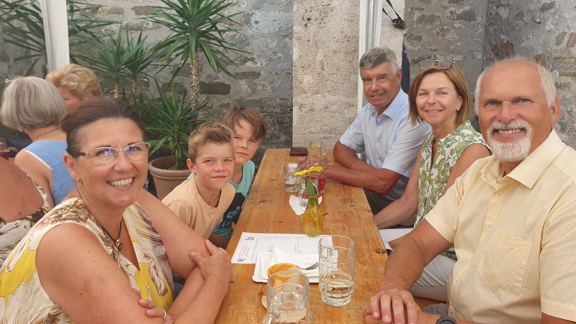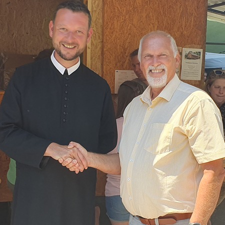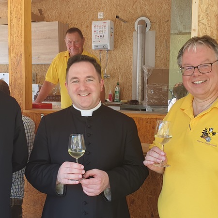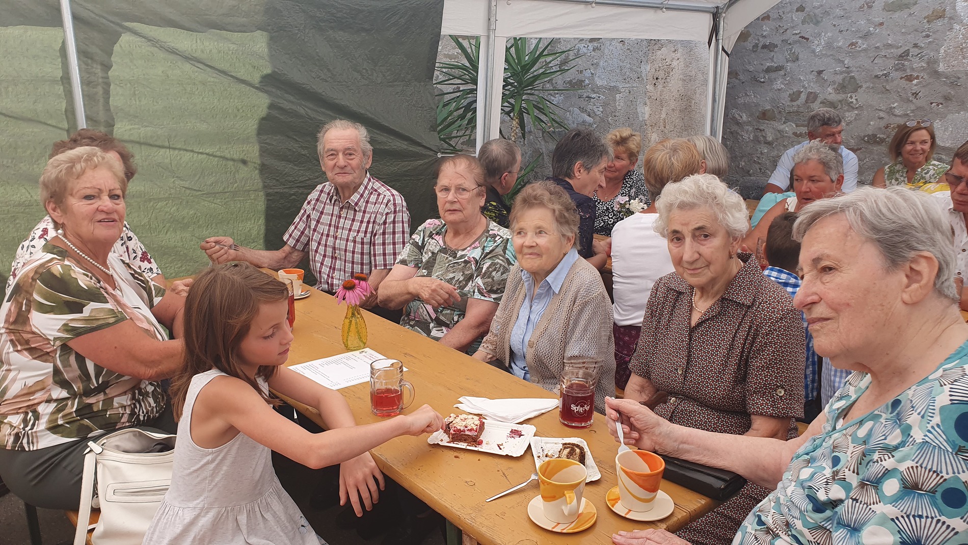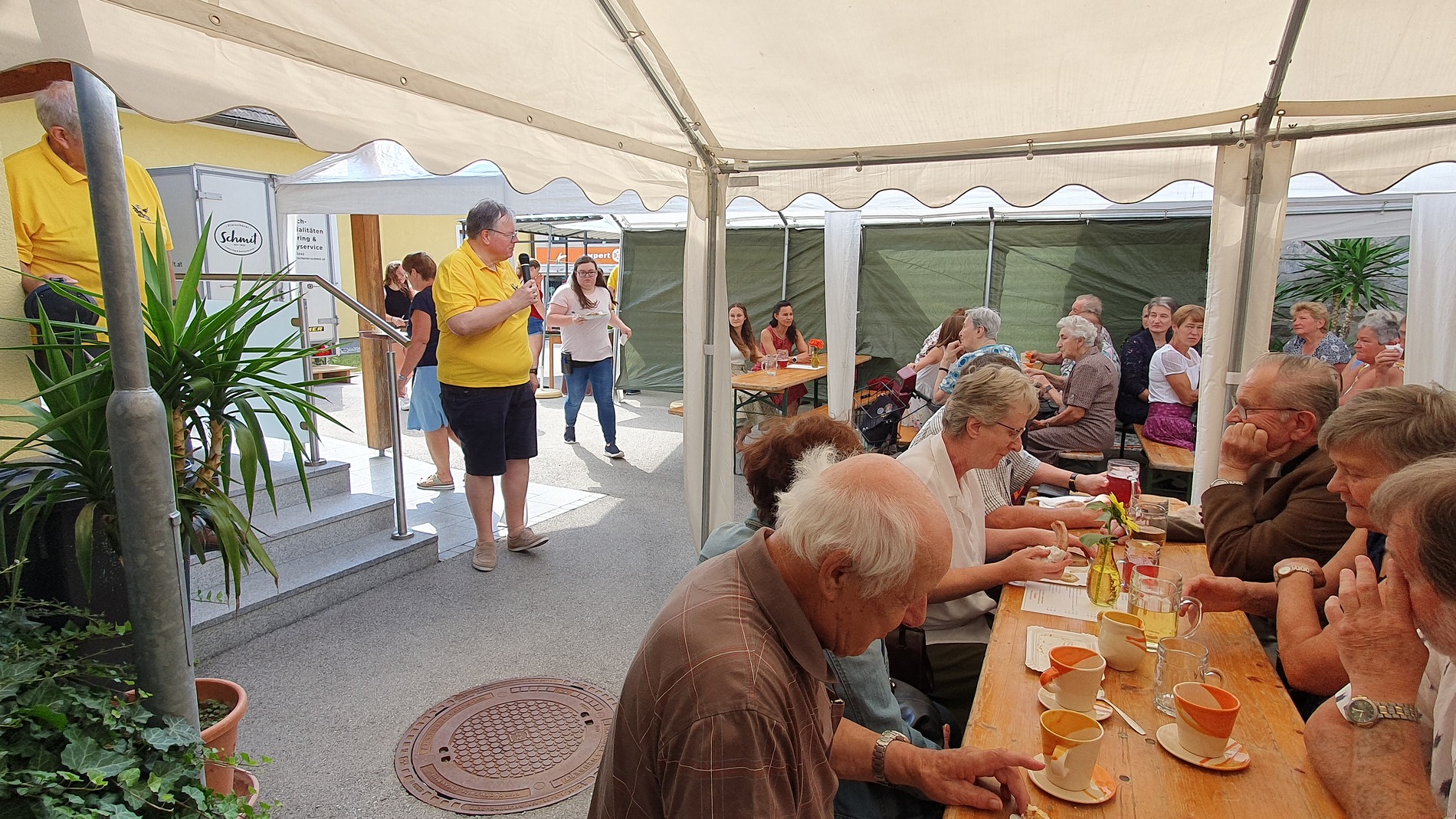 Viele Rabensteinerinnen und Rabensteiner und auch Auswärtige bevölkerten das Pfarrzentrum und den Kirchenplatz. Auch Pater Altmann und Kaplan Thomas Schmid mischten sich unters Volk.