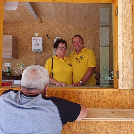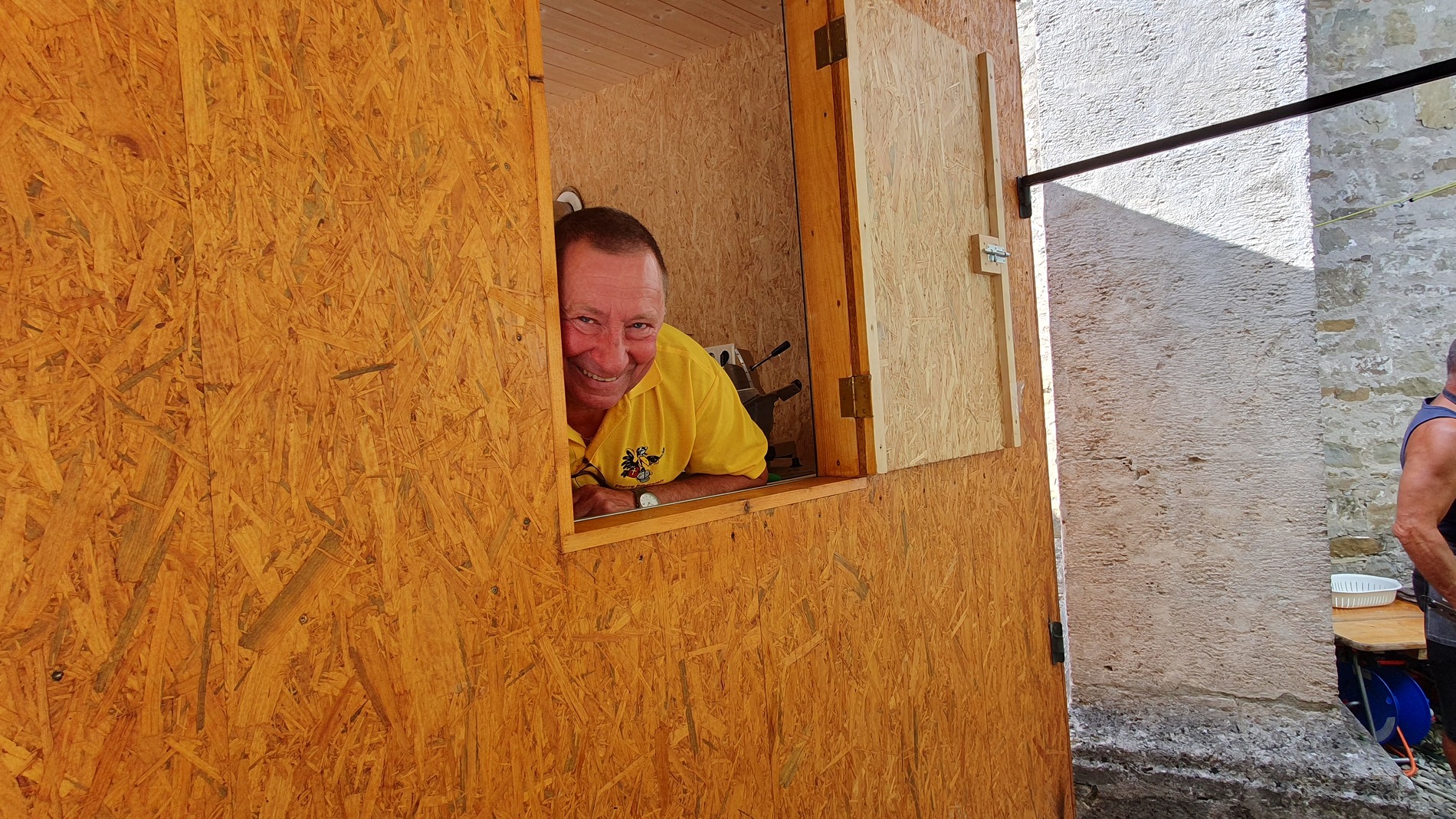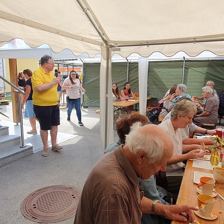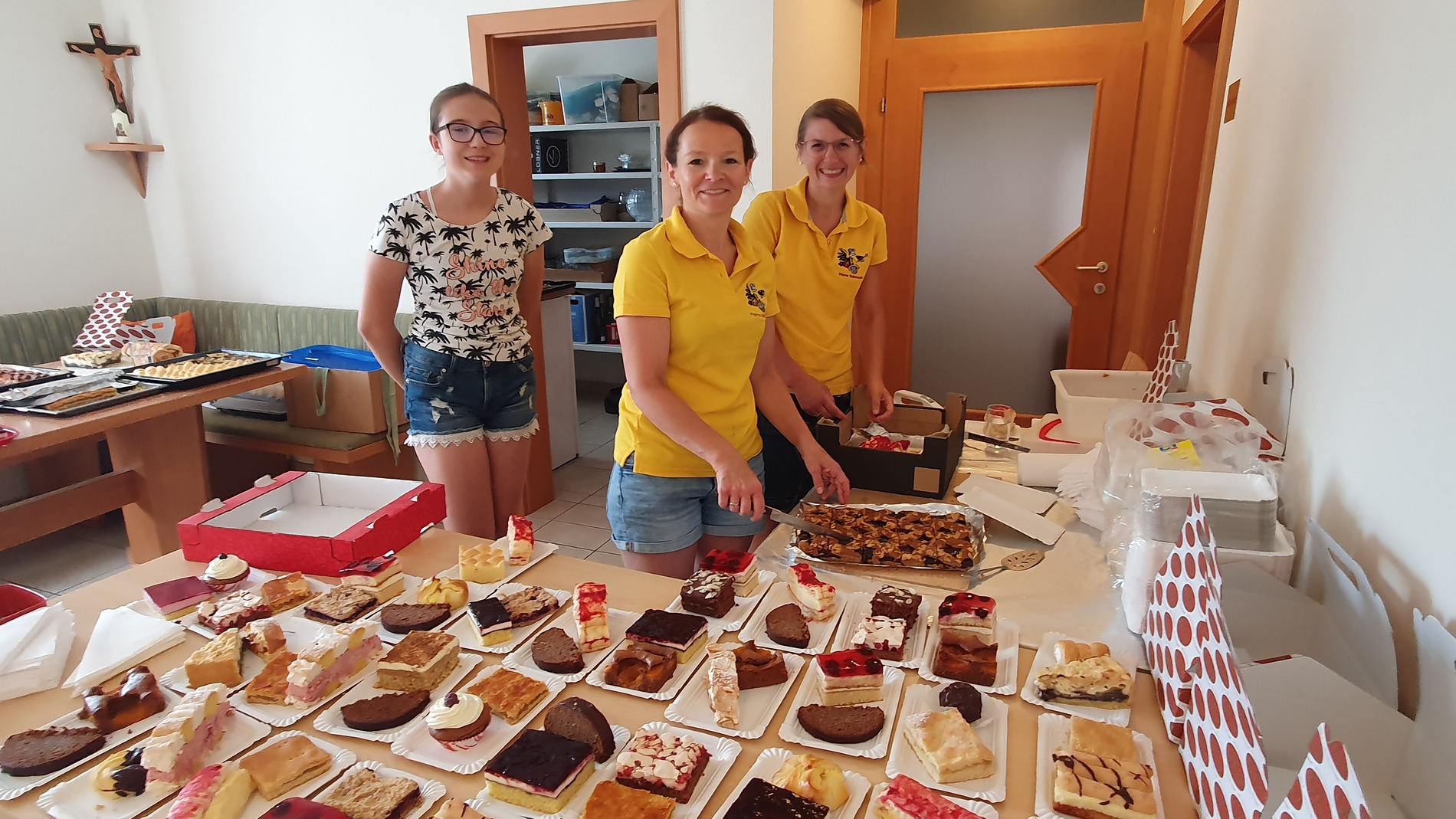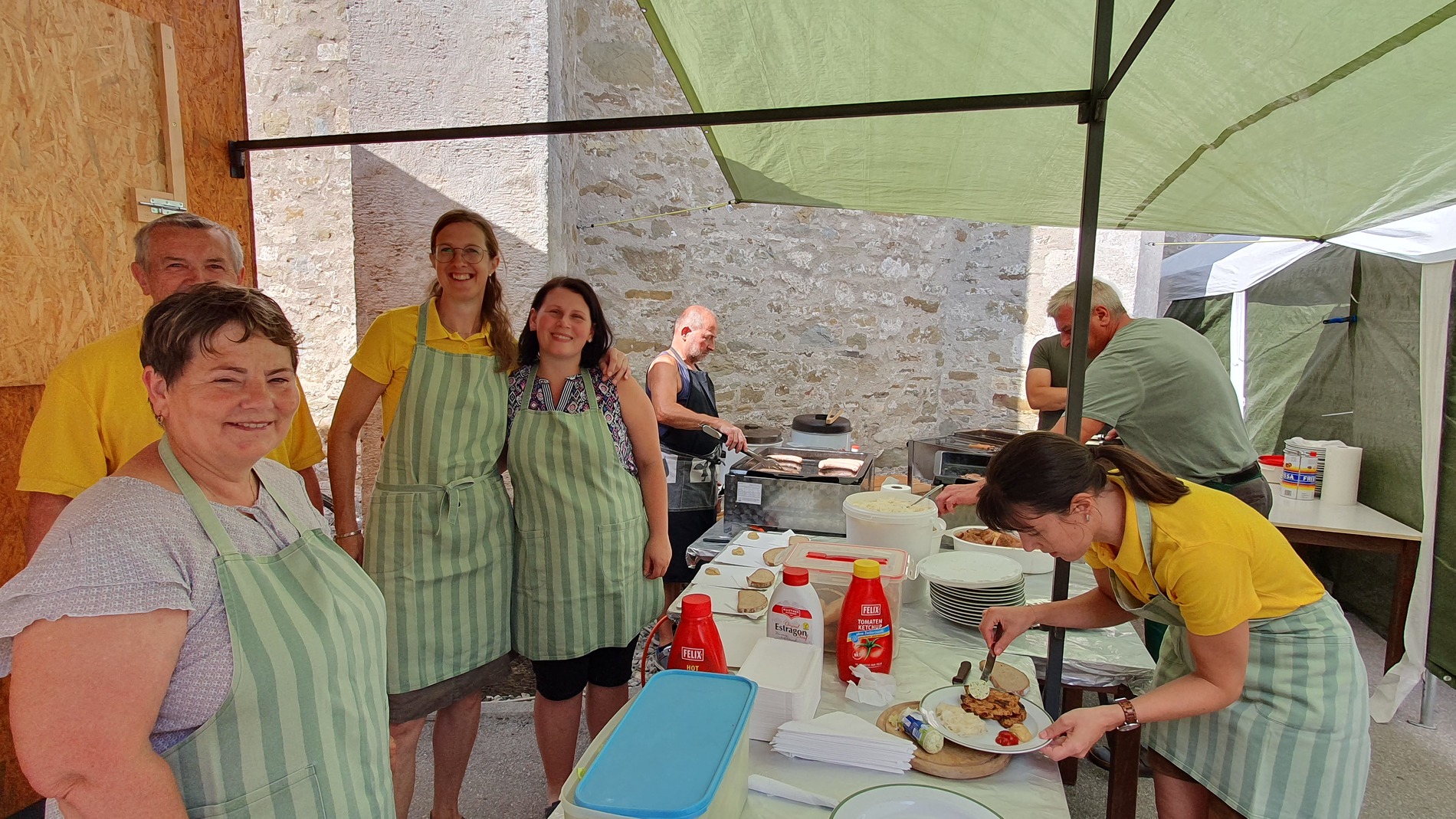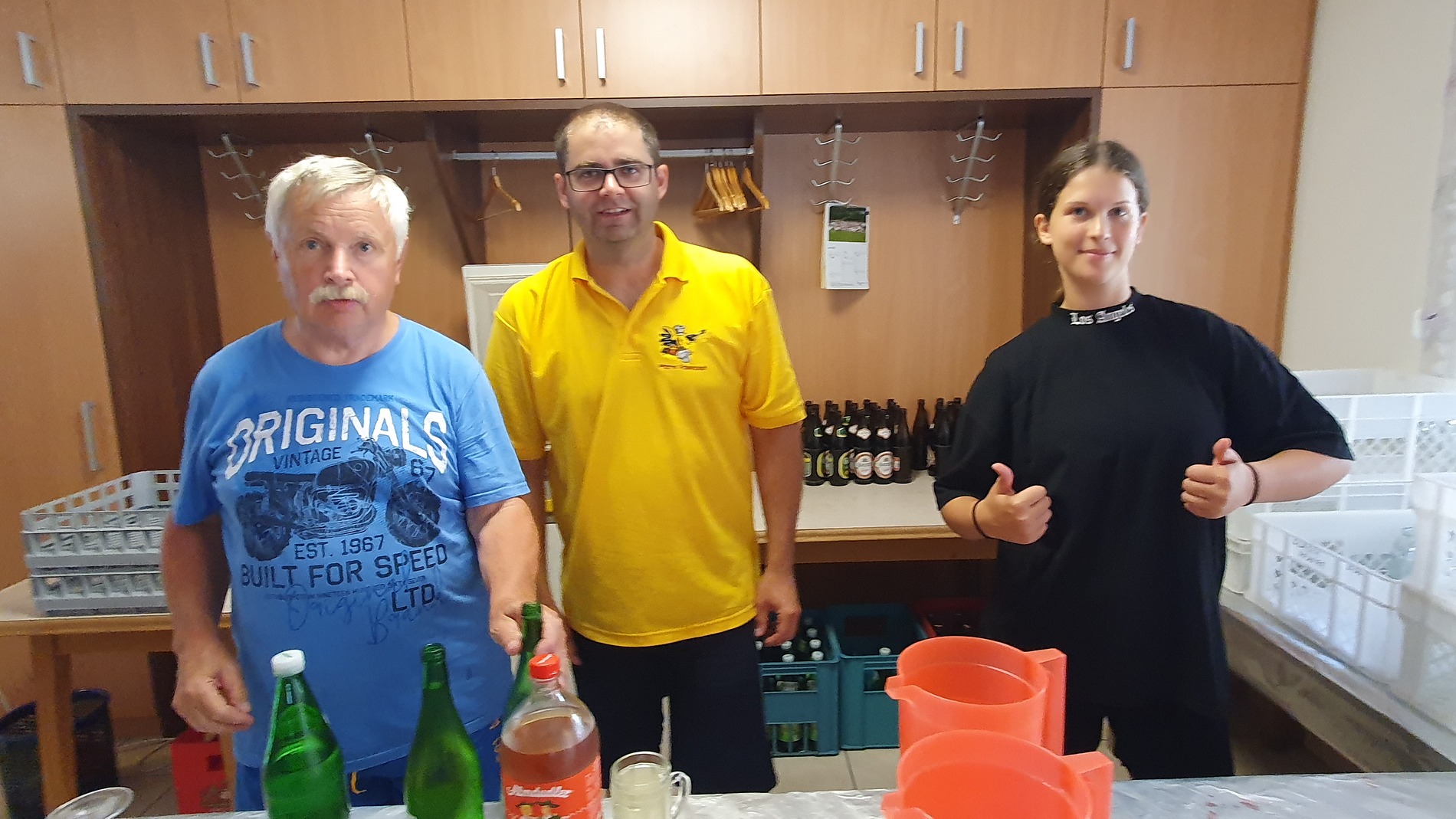 Die Hitze machte ganz schön durstig. Das merkte vor allem das Team bei der Getränkeausgabe. Zu bewundern waren alle Freiwillige, die bei der großen Hitze Kuchen gebacken haben, grillten, ausschenkten, servierten und abräumten.