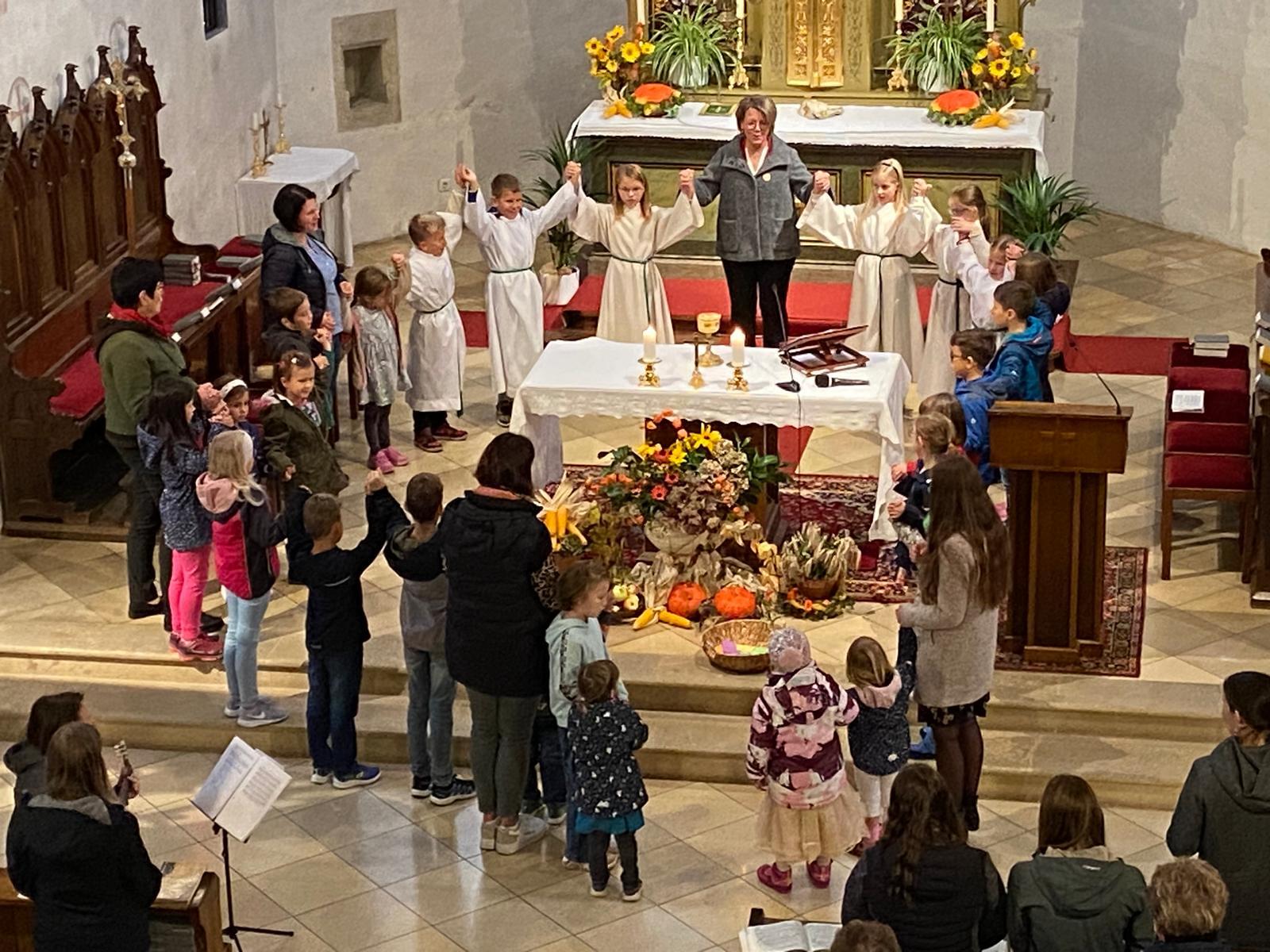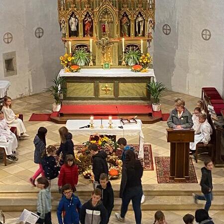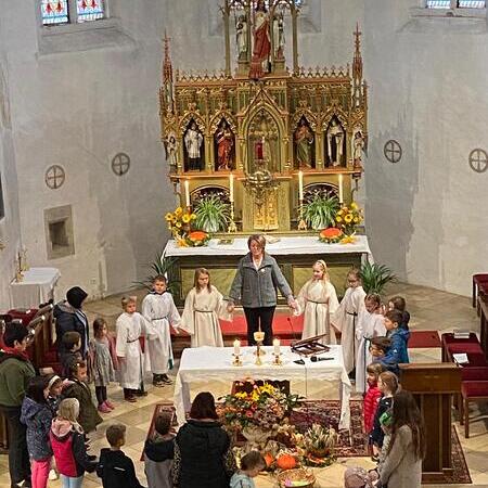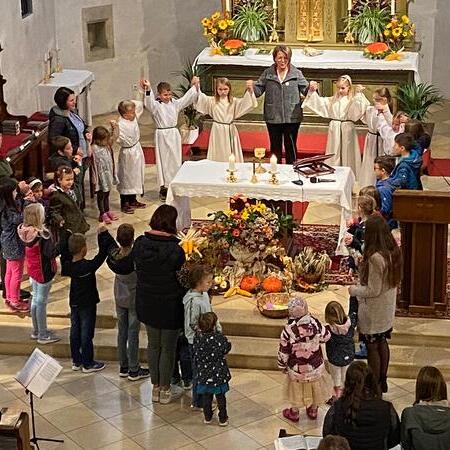 Gemeinsam mit den Kindern, die mitgefeiert haben, sammelten wir anschließend viele Gründe, wofür wir immer wieder Danke sagen können.