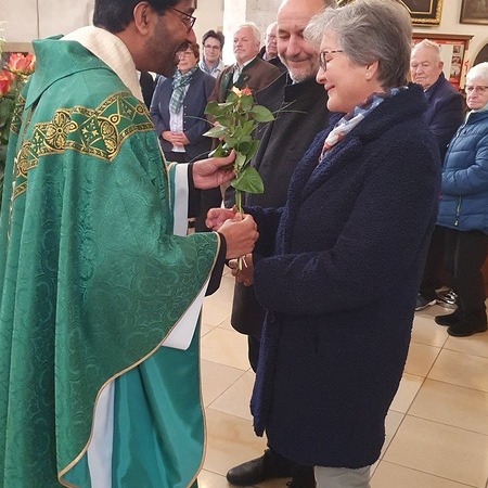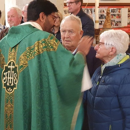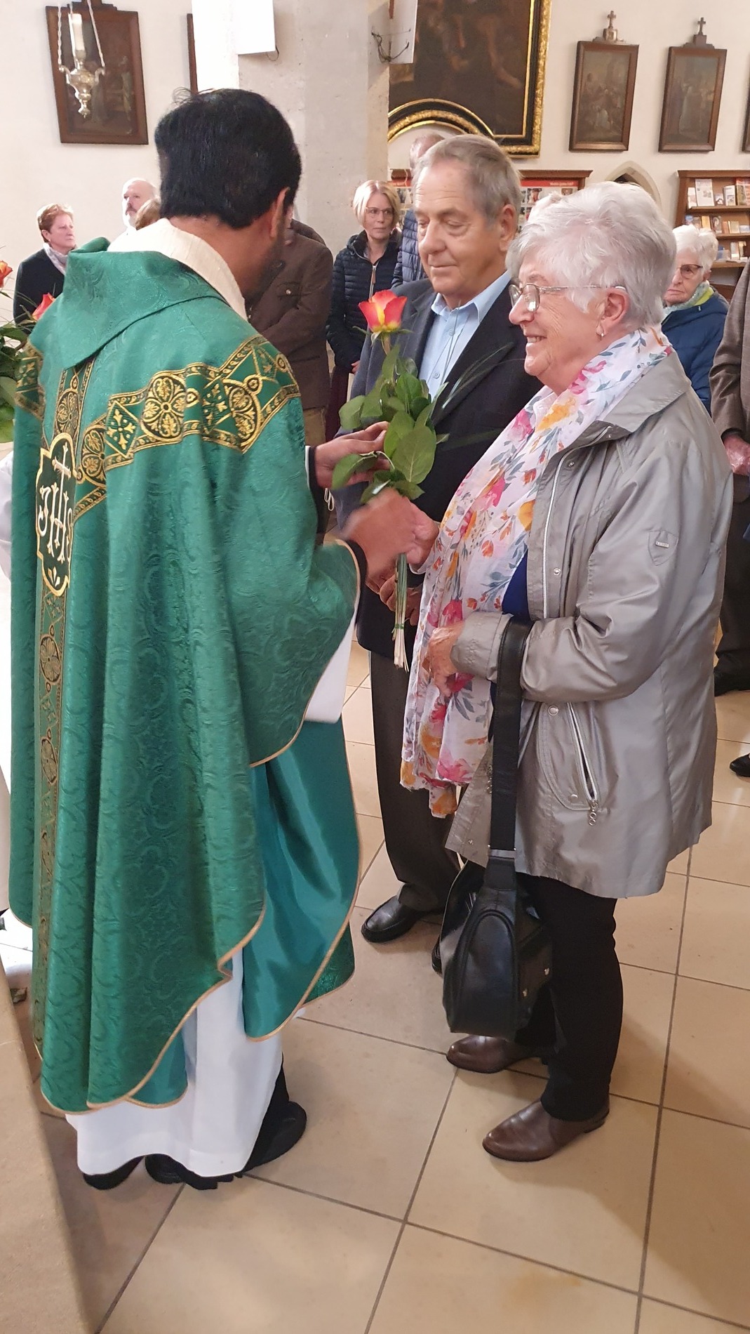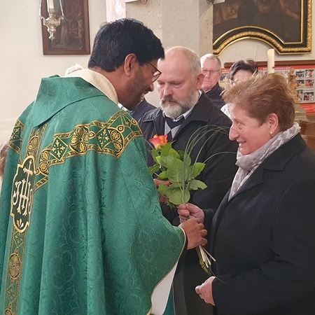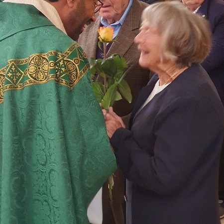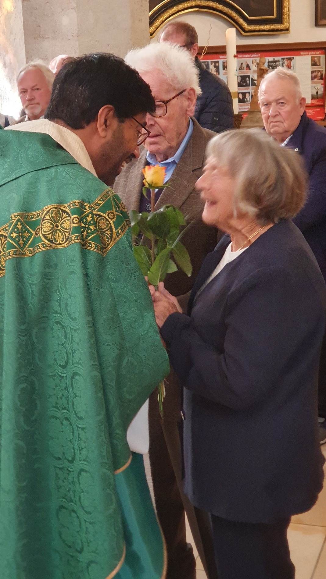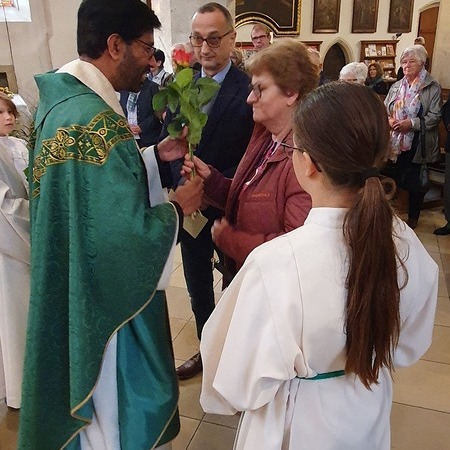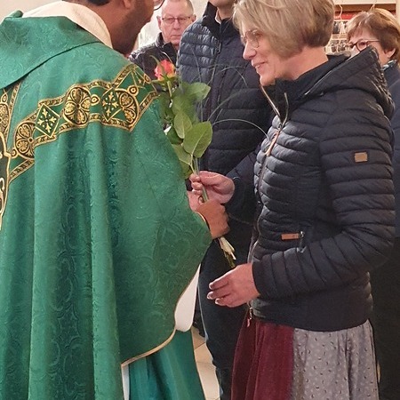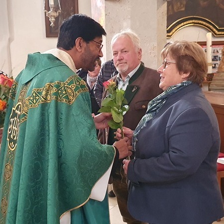 Bewegt erneuerten die Ehepaare ihr Eheversprechen und empfingen den Einzelsegen. Als Zeichen der Wertschätzung und Dankbarkeit für so viele gemeinsame Jahre überreichte P. Martin jedem Paar eine Rose und eine Kerze – Symbole für Liebe, Licht und Segen auf ihrem weiteren Lebensweg.