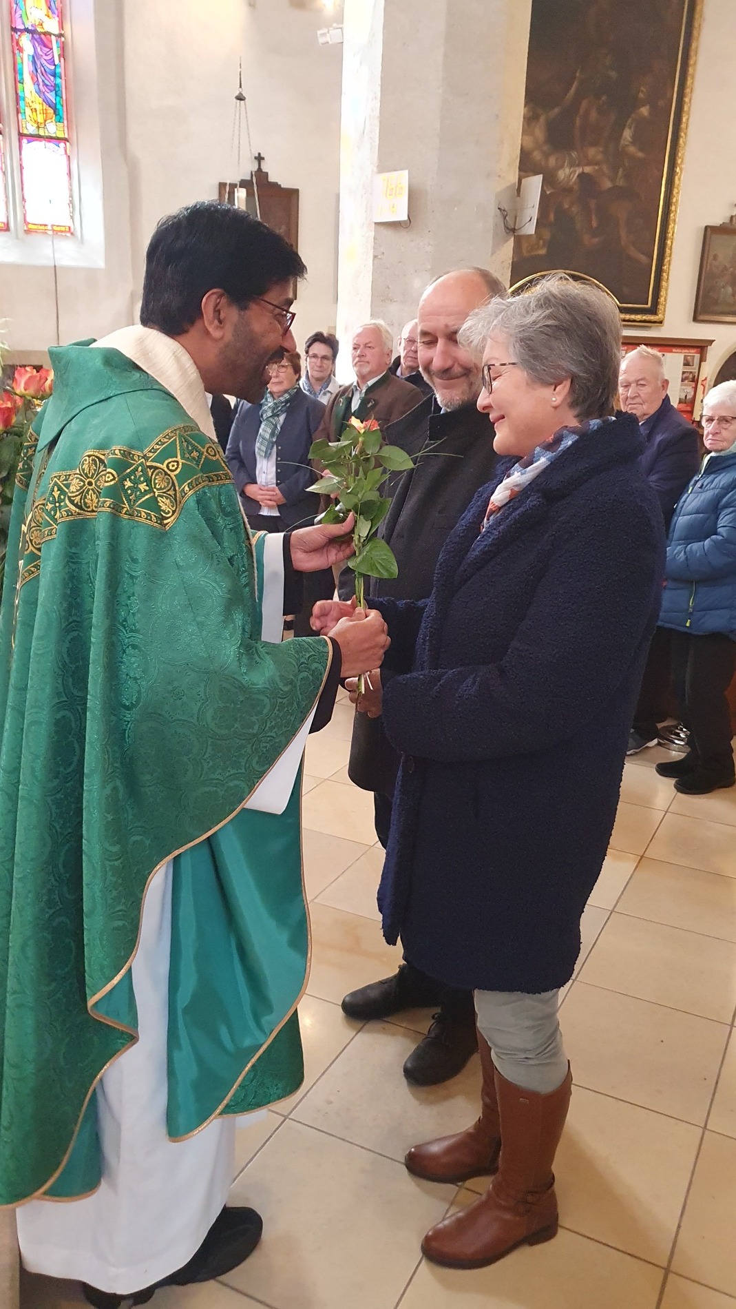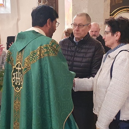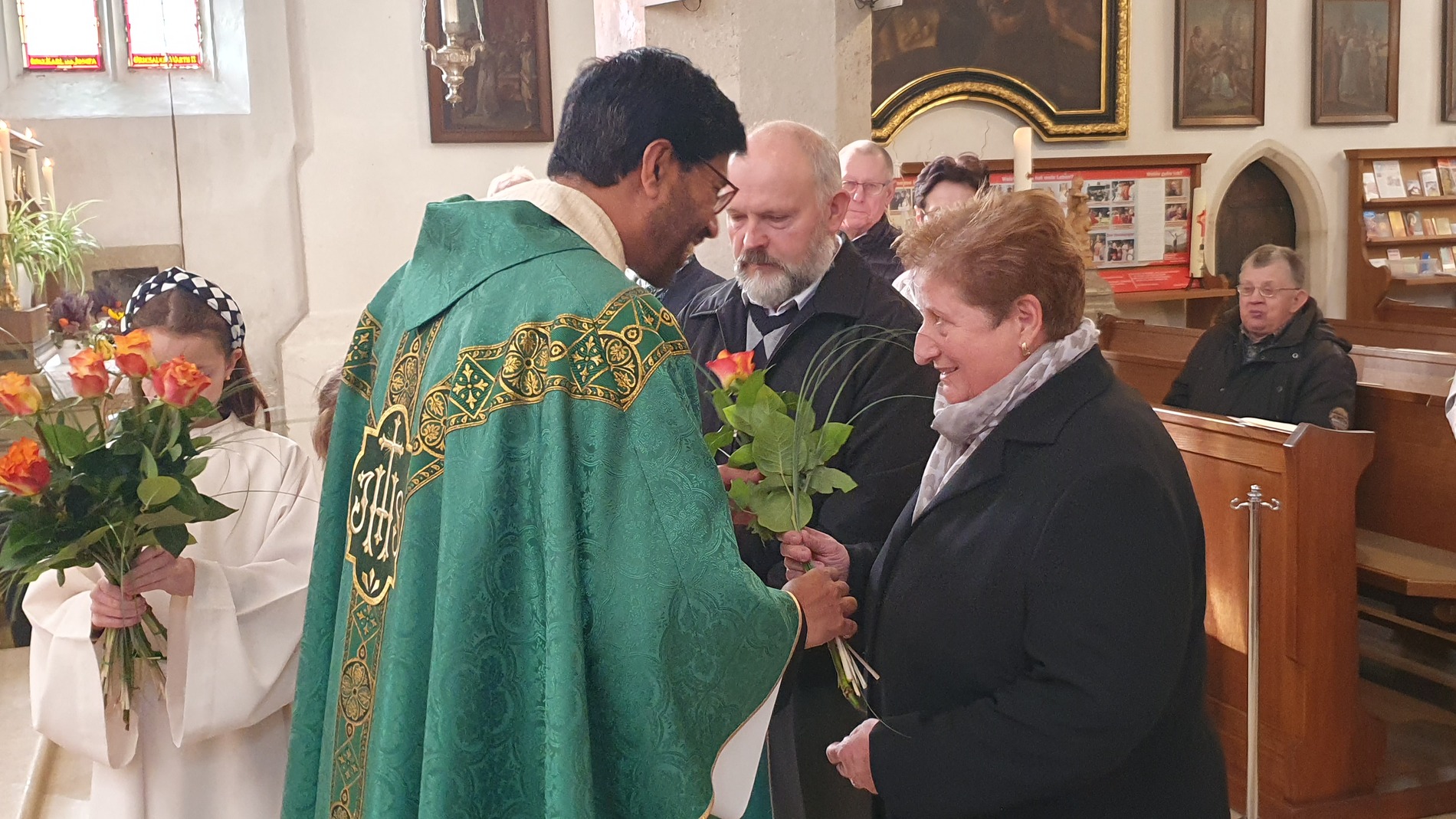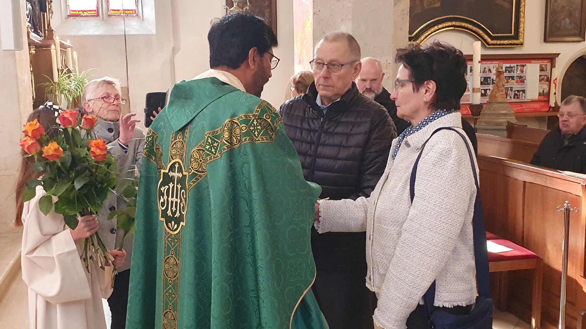 Bewegt erneuerten die Ehepaare ihr Eheversprechen und empfingen den Einzelsegen. Als Zeichen der Wertschätzung und Dankbarkeit für so viele gemeinsame Jahre überreichte P. Martin jedem Paar eine Rose und eine Kerze – Symbole für Liebe, Licht und Segen auf ihrem weiteren Lebensweg.