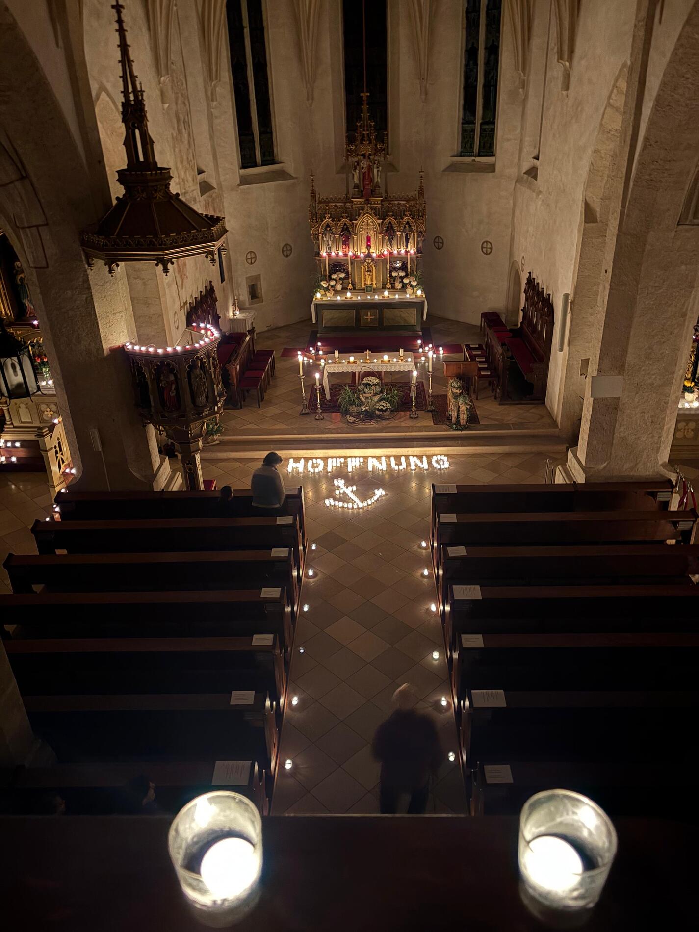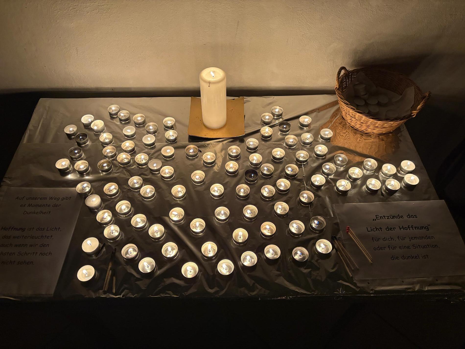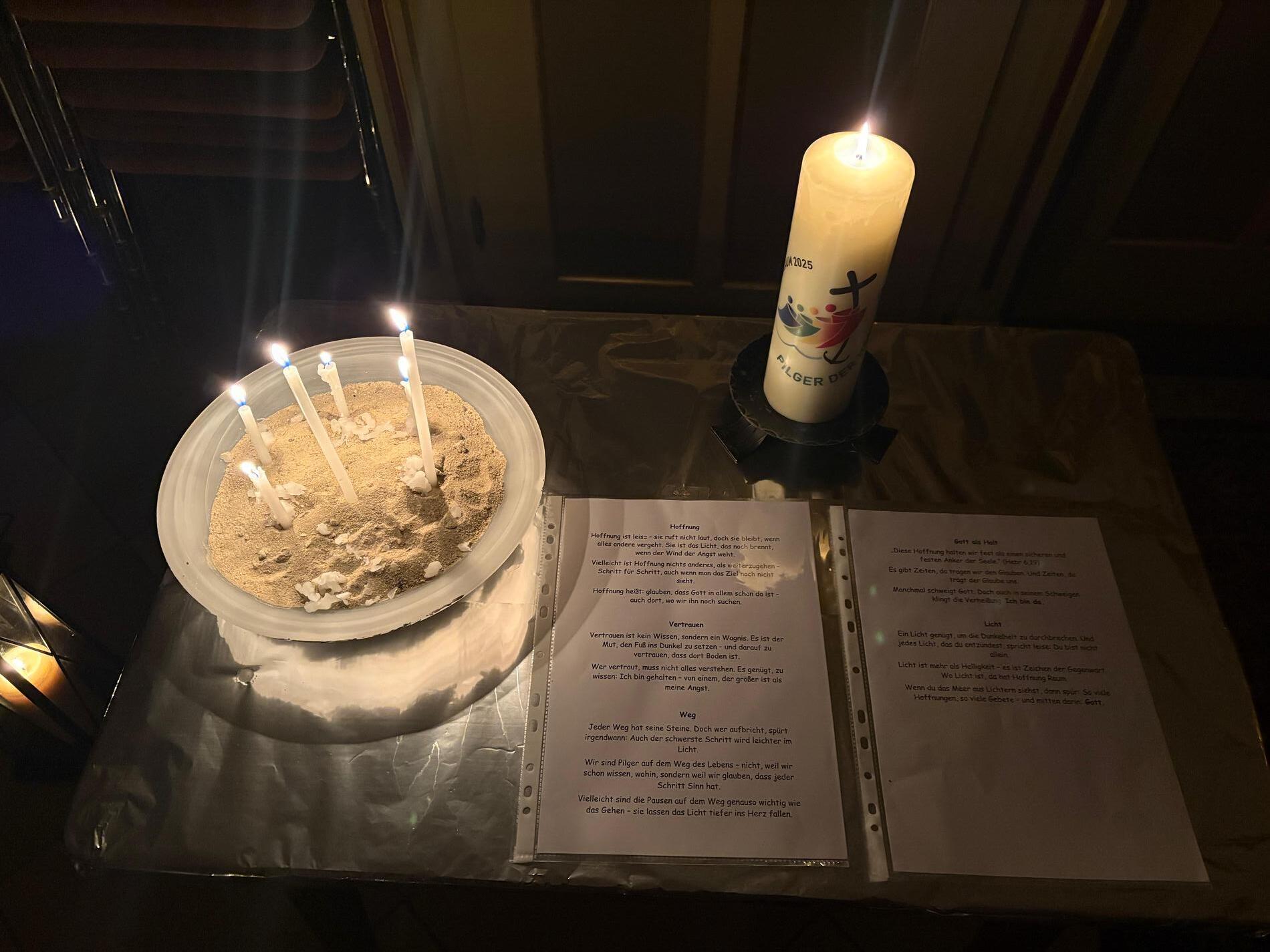 Unter dem Motto „Pilger der Hoffnung – Heiliges Jahr 2025“ konnten die Besucherinnen und Besucher zur Ruhe kommen und sich von Licht, Musik und besinnlichen Texten tragen lassen. Verschiedene Stationen luden zum Verweilen, Nachdenken und Beten ein – und machten den Weg des Pilgers als Weg der Hoffnung spürbar, der uns mit Gott und miteinander verbindet.