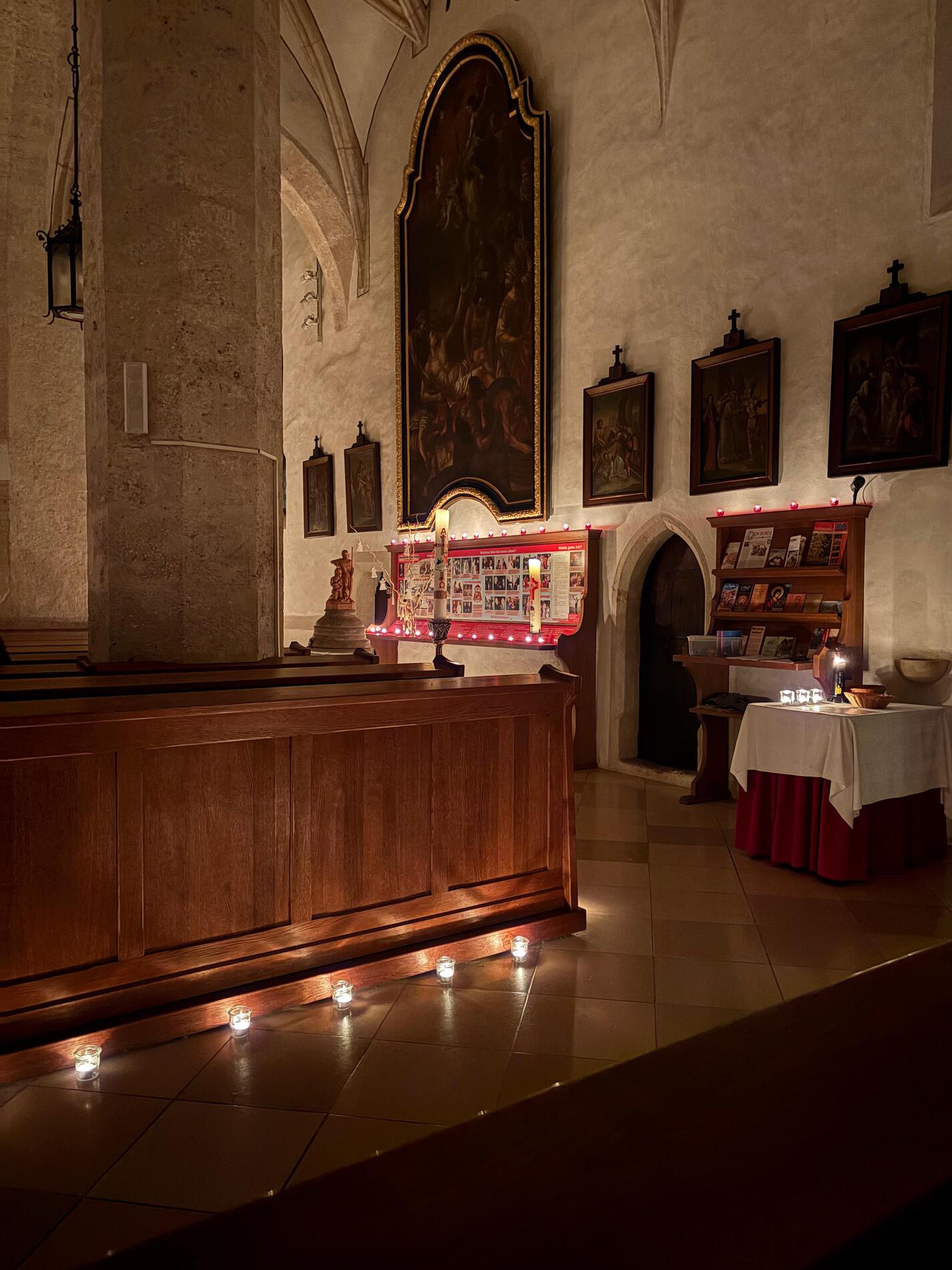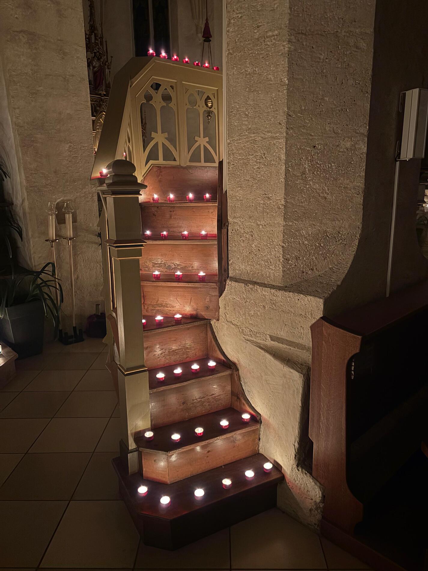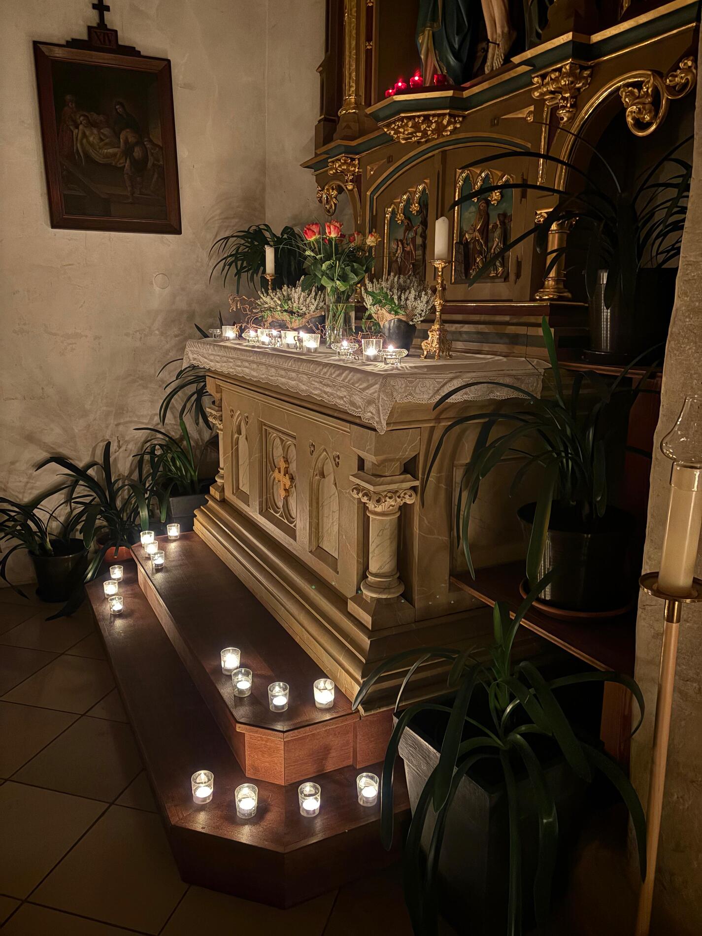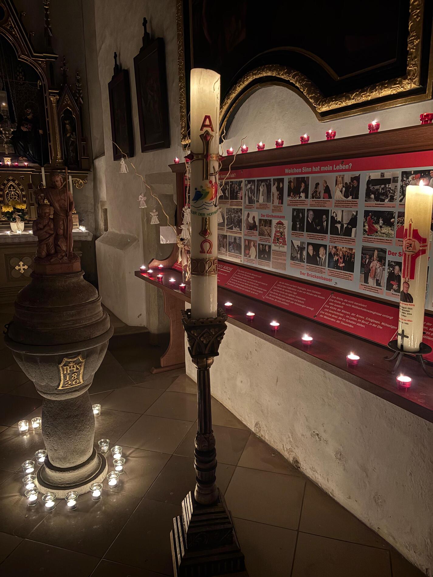 Unter dem Motto „Pilger der Hoffnung – Heiliges Jahr 2025“ konnten die Besucherinnen und Besucher zur Ruhe kommen und sich von Licht, Musik und besinnlichen Texten tragen lassen. Verschiedene Stationen luden zum Verweilen, Nachdenken und Beten ein – und machten den Weg des Pilgers als Weg der Hoffnung spürbar, der uns mit Gott und miteinander verbindet.