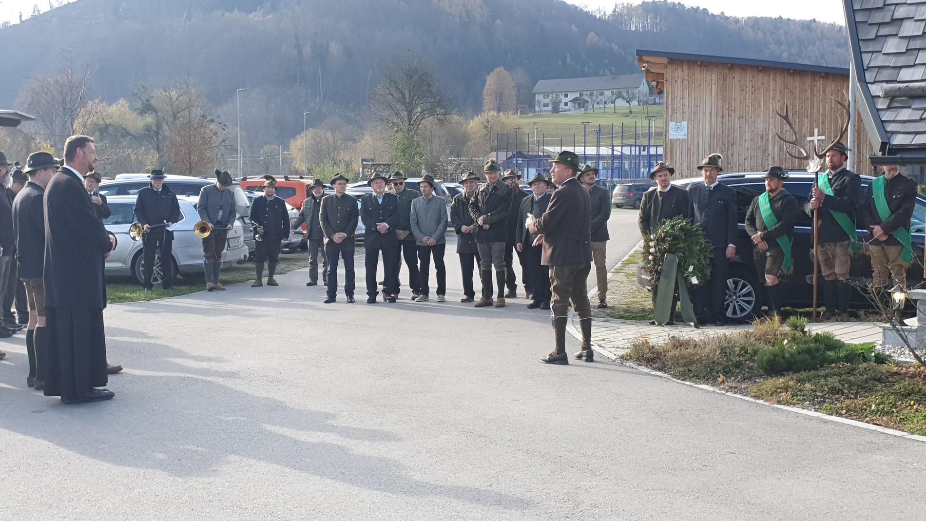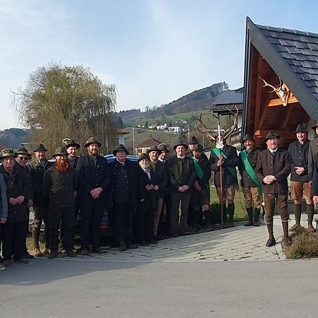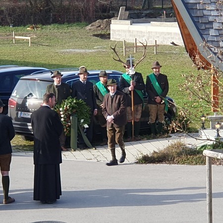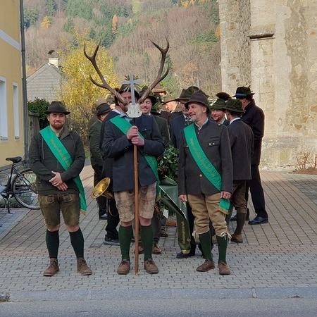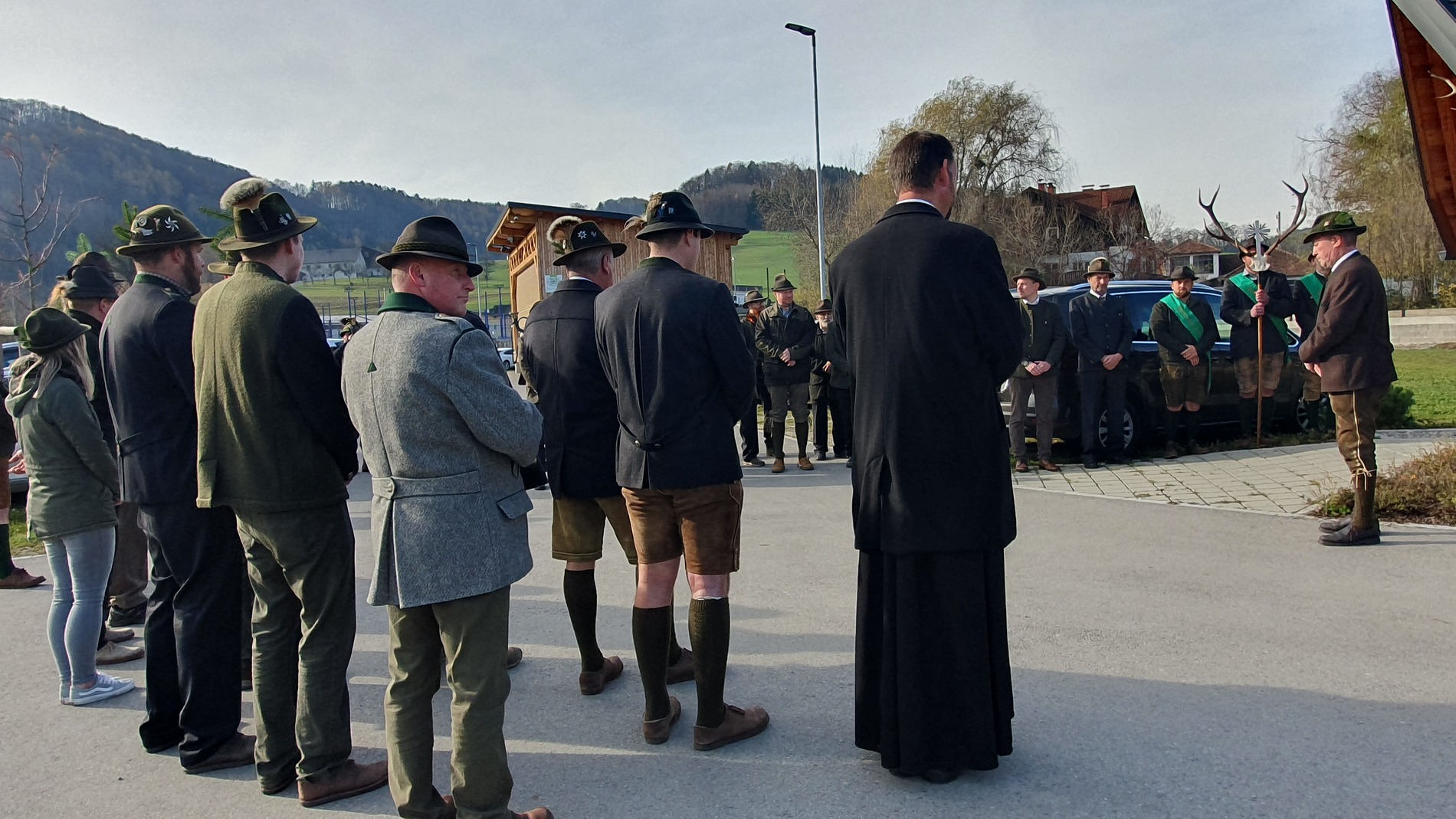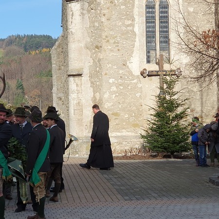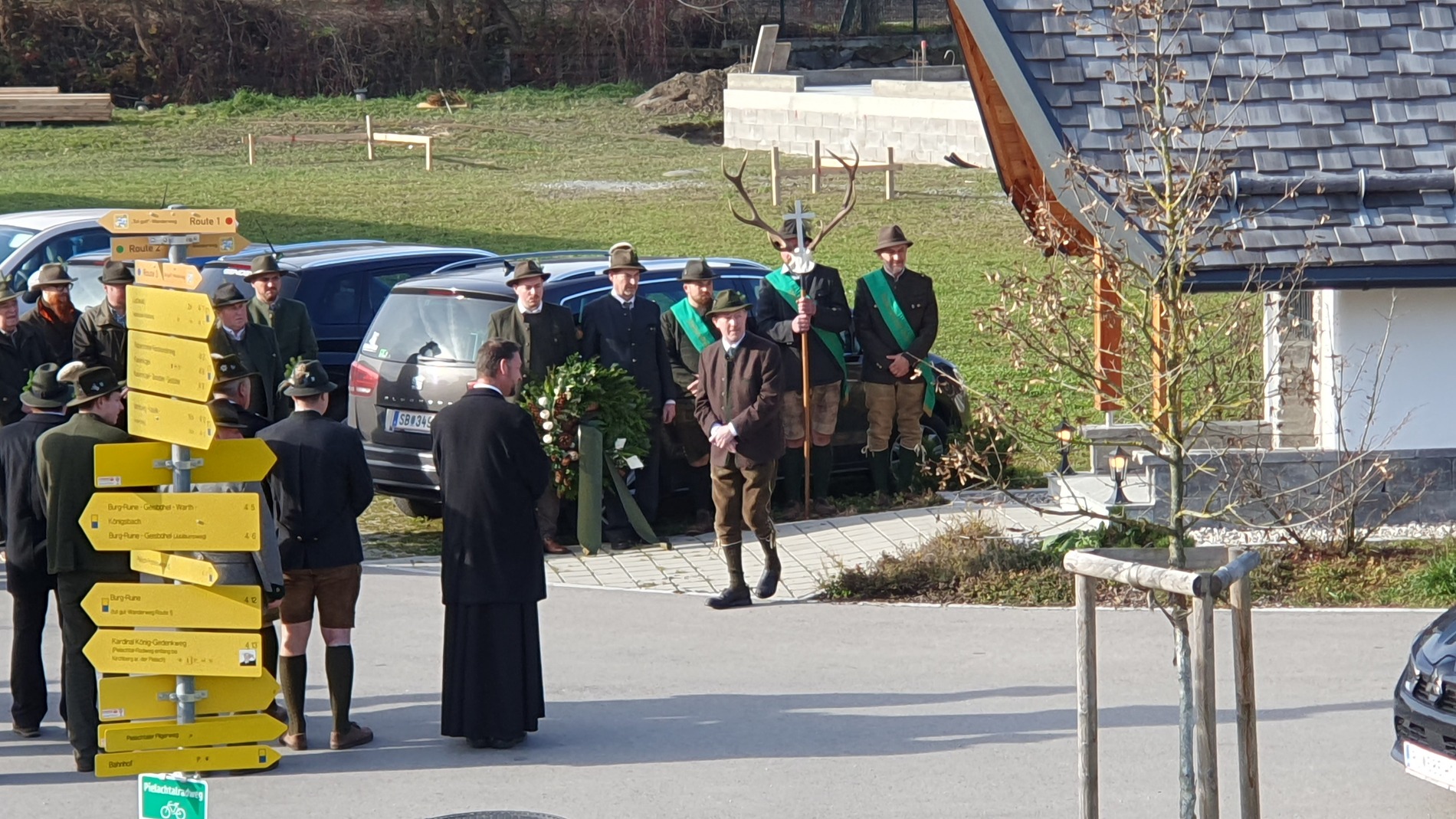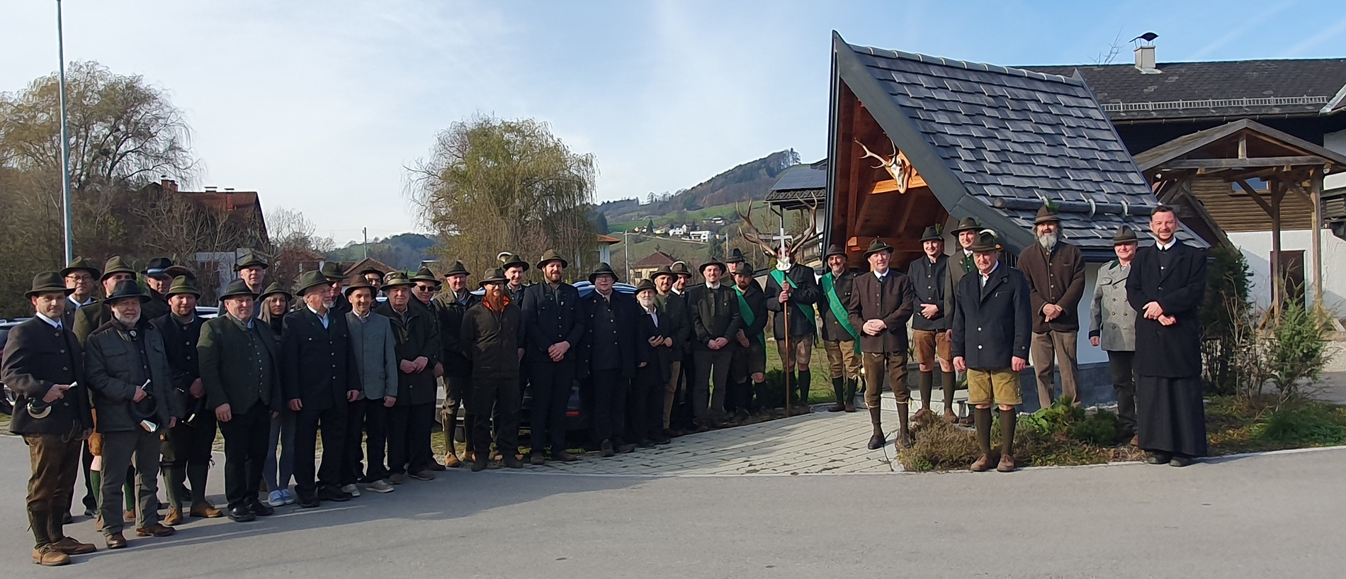 Nach dem Gottesdienst begab sich die Jägerschaft zur Hubertuskapelle, um ihren Schutzpatron zu ehren und der verstorbenen Mitglieder zu gedenken. Feierliche wurde ein Kranz niedergelegt.