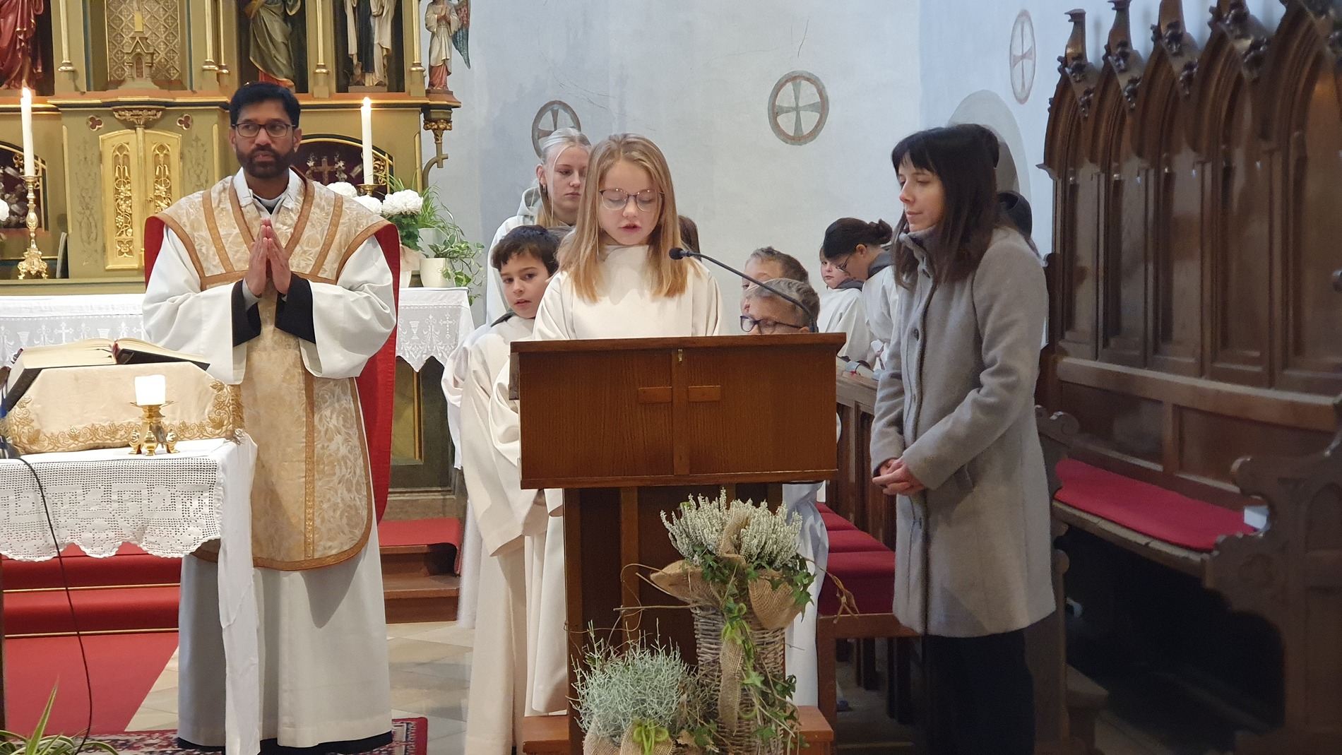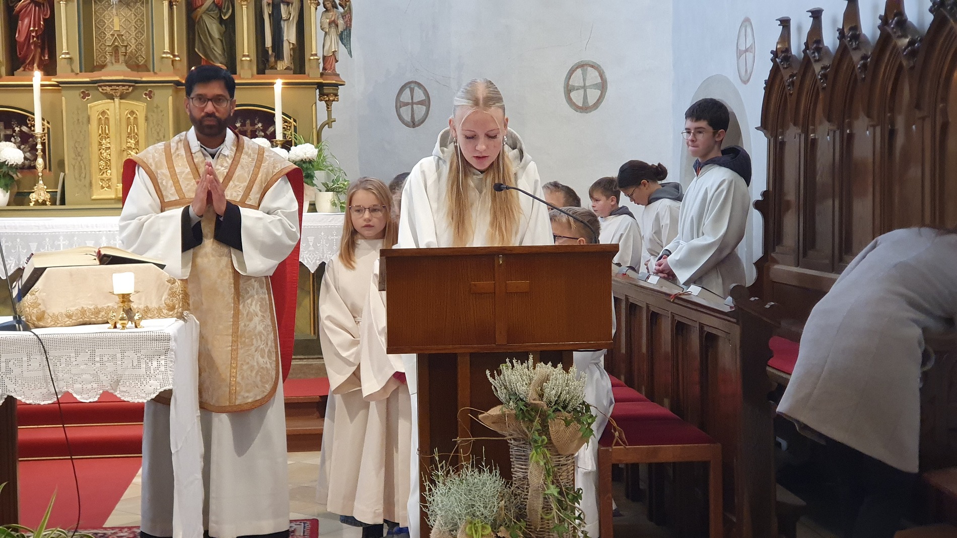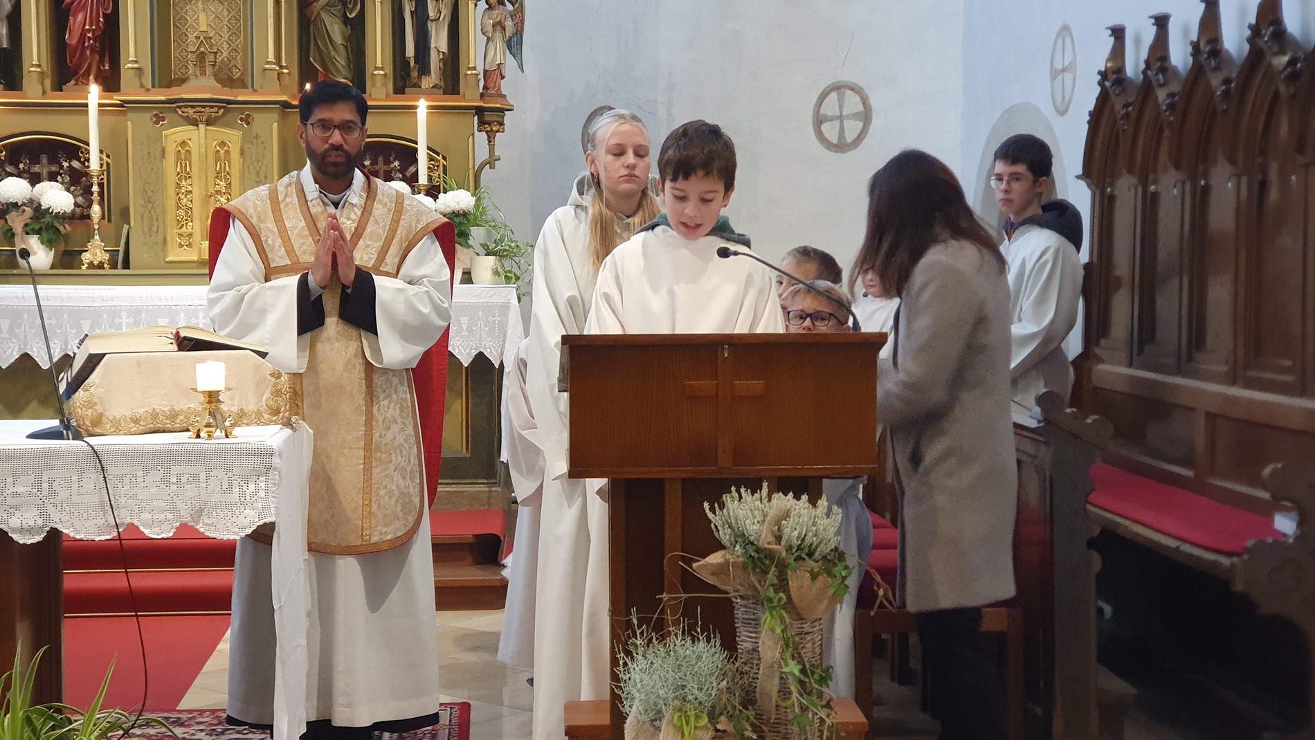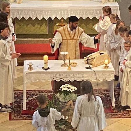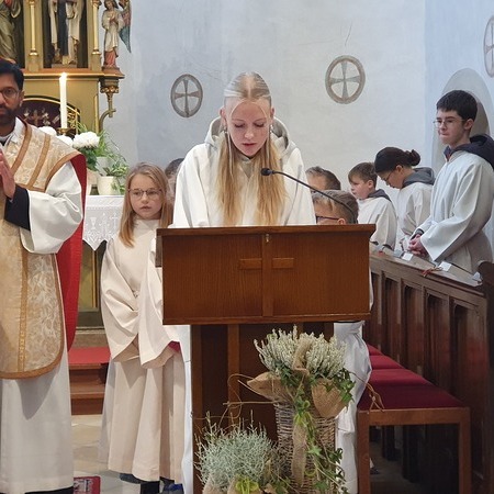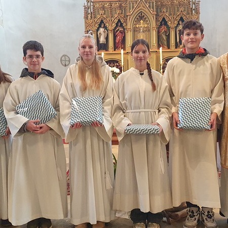 Die scheidenden Ministrantinnen und Ministranten wurden bedankt und mit großem Applaus verabschiedet. Ein letztes Mal übernahmen sie ihre vertrauten Aufgaben wie Kreuz- und Leuchtertragen, Schwenken des Weihrauchgefäßes und Läuten.