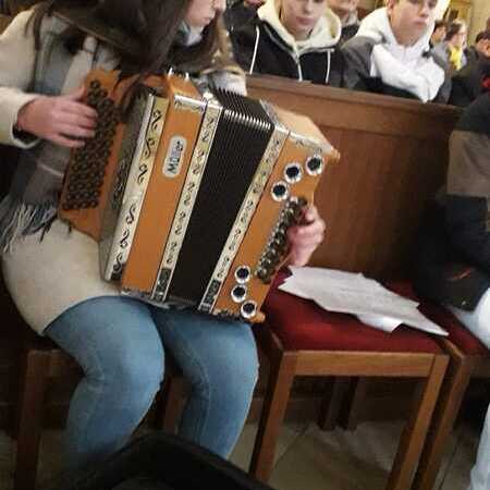 Gestaltet wurde die Feier von Frau Carolin Broscha mit der musikalischen Unterstützung von den Kolleginnen Karin Sieder und Hannah Koller. Die Schüler Tim Schwaiger an der Kachon, sowie Alexandra Dirnberger und Jakob Stiefsohn umrahmten feierlich mit ihren Steirischen Harmonikas den Gottesdienst.