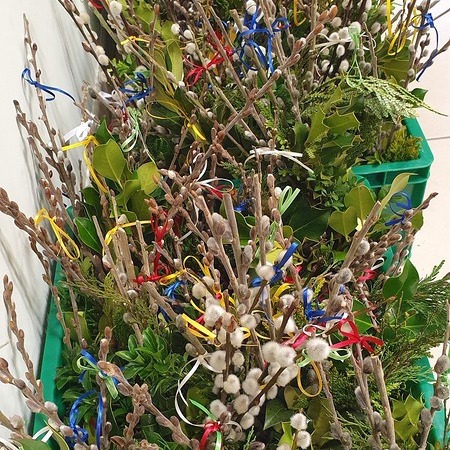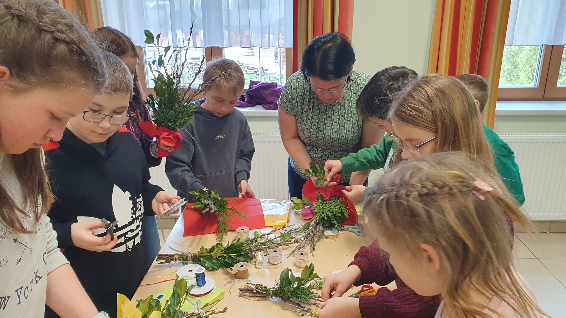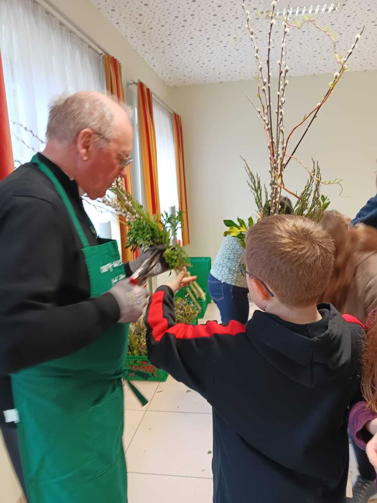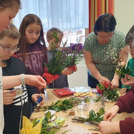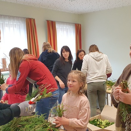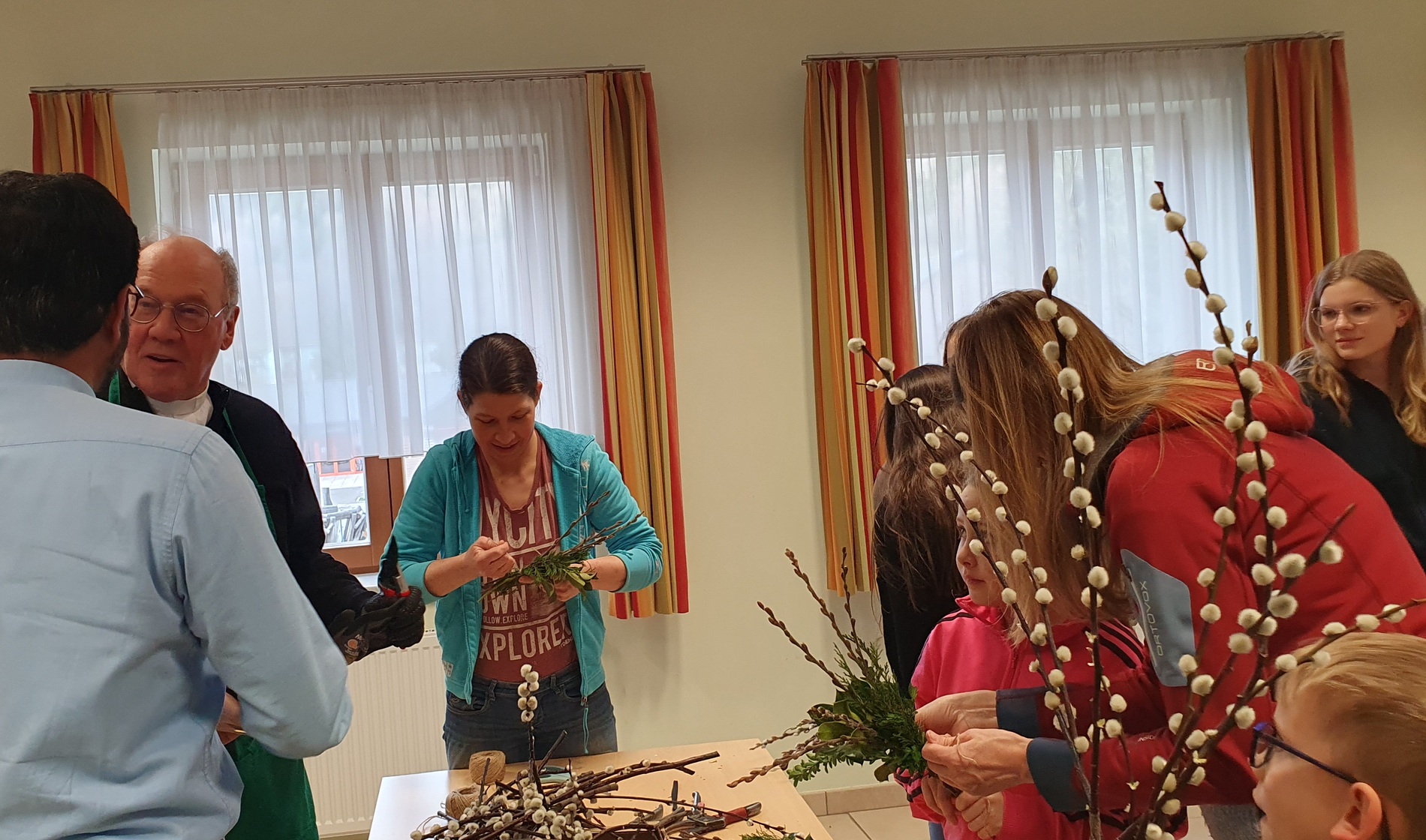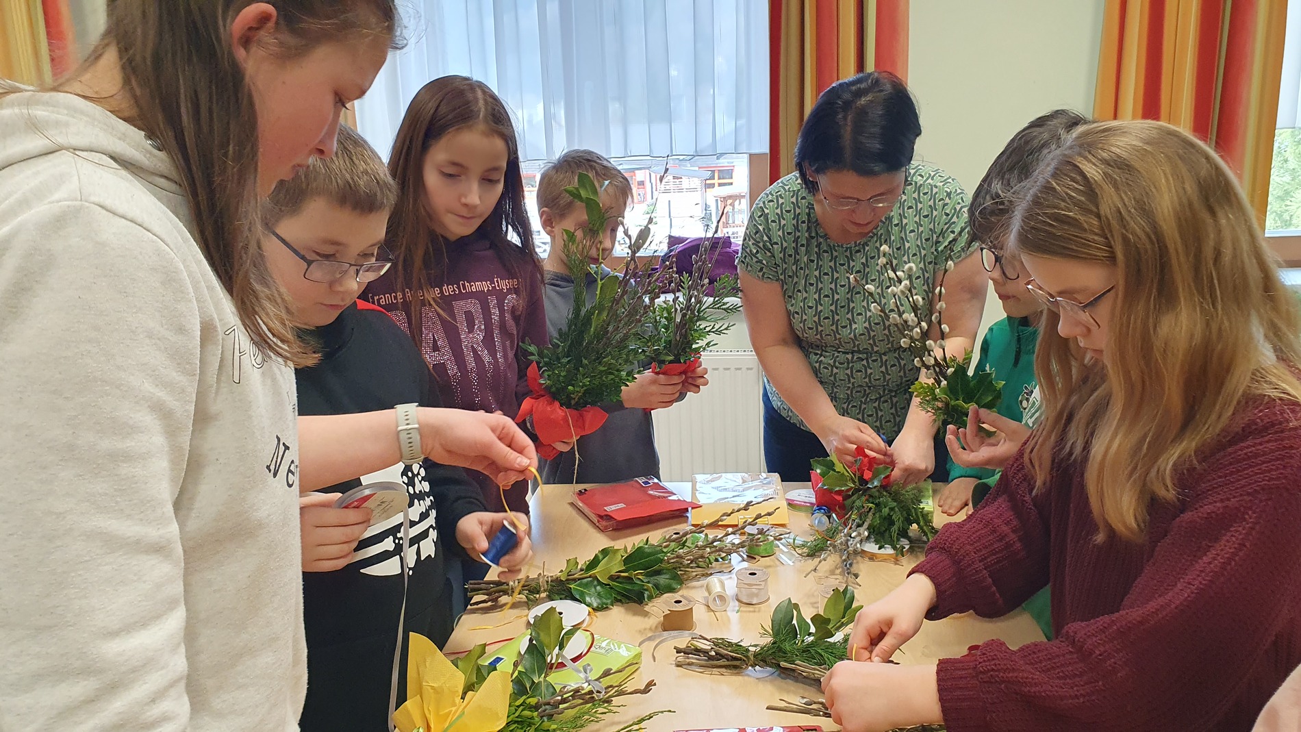 Michaela Riedl und ihr Betreuerinnenteam hatten bereits alles bestens vorbereitet: Palmkätzchenzweige, Buchsbaum und Bindfaden lagen bereit.