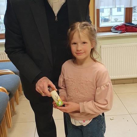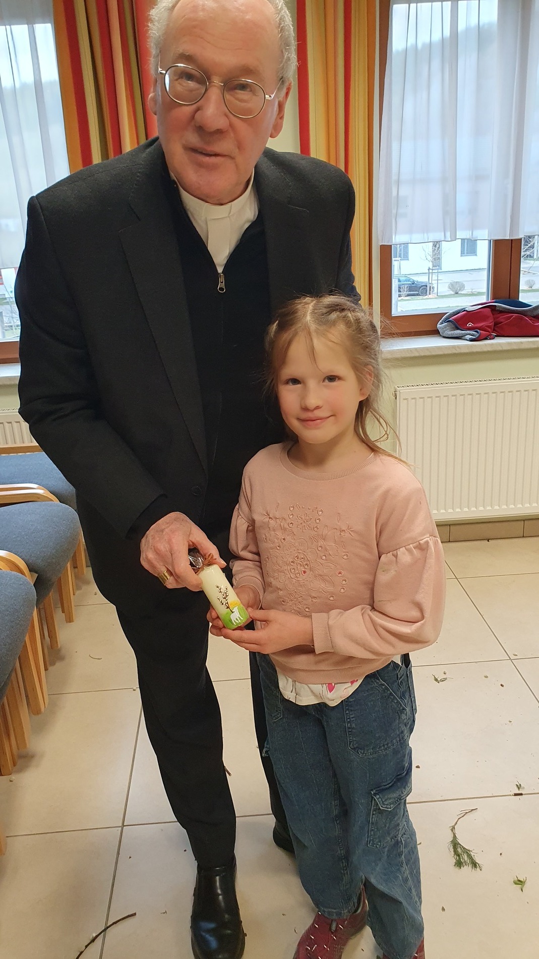 Als Dankeschön überreichte Christina Braunsteiner unserem Bischof eine von Christiane Moderbacher verzierte Osterkerze.