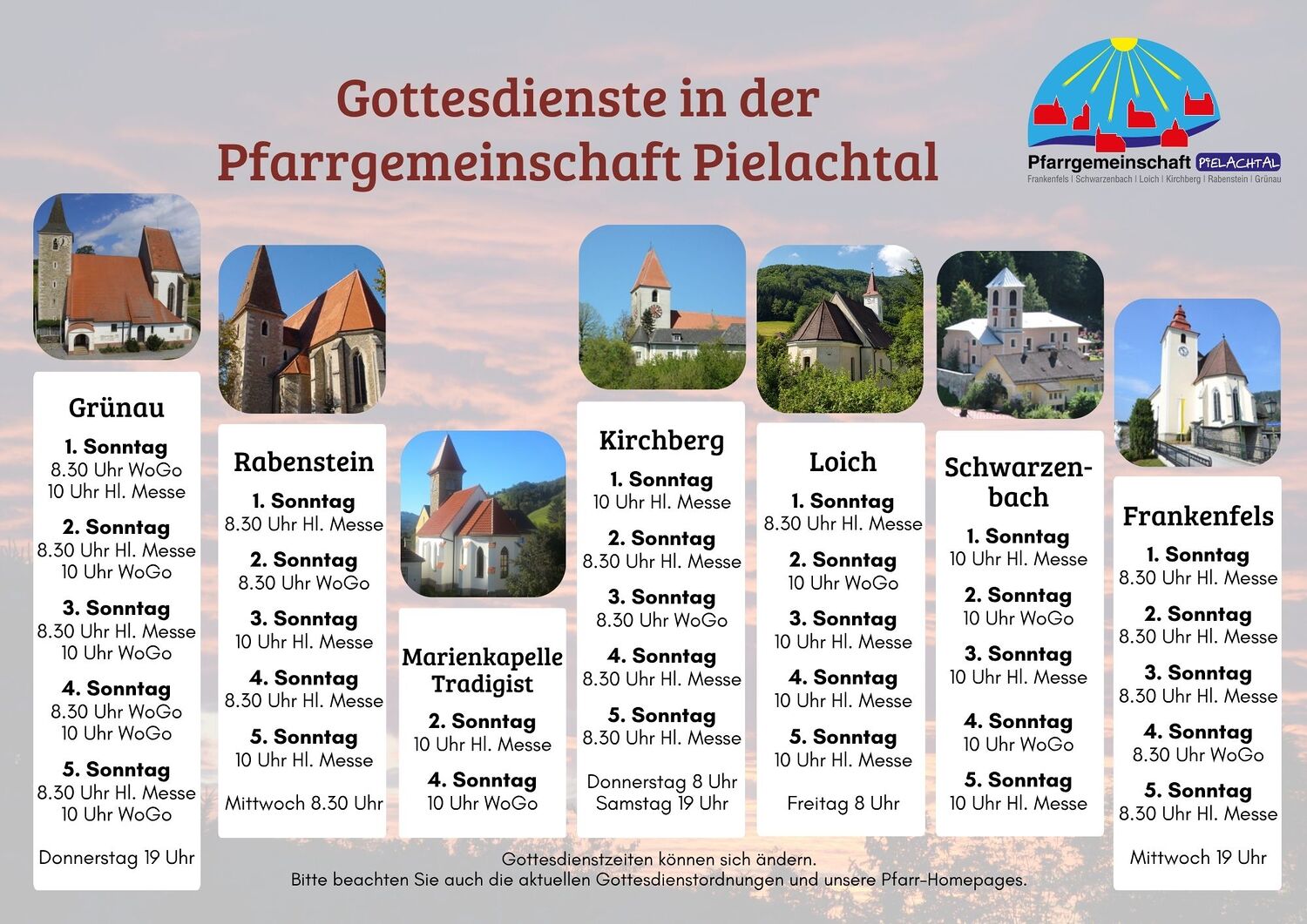 jeden 1., 2. und 4. Sonntag und jeden Mittwoch um 8.30 Uhr, jeden 3. und 5. Sonntag um 10 Uhr.